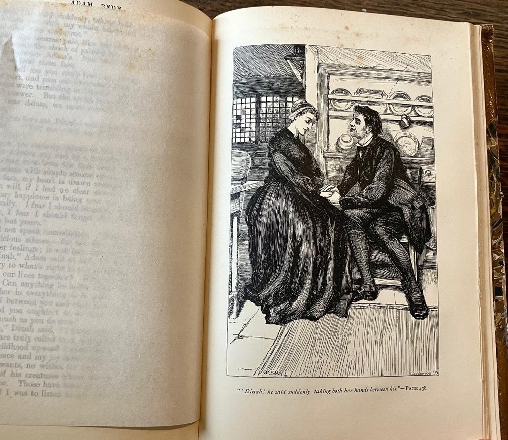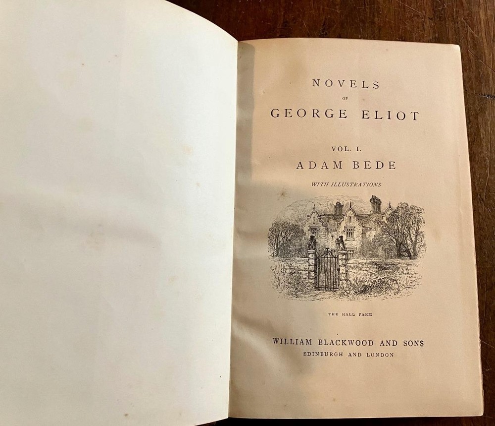 Please scroll down or click on the full description for images & condition report 1890 The WORKS Of GEORGE ELIOT 8 x Volumes LEATHER BOUND COMPLETE SET 1890 The WORKS Of GEORGE ELIOT 8 x Volumes LEATHER BOUND COMPLETE SET Click images to enlarge Description THE WORKS OF GEORGE ELIOT COMPLETE SET IN EIGHT VOLUMES PUBLISHED BY WILLIAM BLACKWOOD & SONS, CIRCA 1890's EIGHT TITLES BOUND INTO SEVEN VOLUMES, ALL HARDBACKS BOUND IN LATE 19TH CENTURY HALF LEATHER BINDINGS WITH MARBLED BOARDS & ENDPAPERS, EXTRA ILLUSTRATED TITLE PAGE TO ALL BOOKS WITH SOME BOOKS HAVING FURTHER FULL PAGE ILLUSTRATIONS AS PUBLISHED, EACH BOOK MEASURES APPROX 7.5 x 5 INCHES RUBBING TO LEATHER COVERS & MARBLED BOARDS WITH A FEW DARK MARKS TO LEATHER SPINES, LAST TWO VOLUMES ARE SLIGHTLY LIGHTER IN COLOUR TO SPINES, MOST CORNERS BUMPED, OCCASIONAL MINOR FOXING, MINOR CREASES TO PAGES WITH VERY OCCASIONAL CHIPS TO PAGE MARGINS, ONE TEXT PAGE TO VOLUME HAS SOME COLOURED PENCIL SCRIBBLES TO ONE TEXT PAGE, COUPLE OF INSCRIPTIONS TO FRONT ENDPAPERS, OVERALL THE SET IS IN VERY GOOD CONDITION WITH ALL BOARDS WELL ATTACHED & MAJORITY OF PAGES CLEAN PLEASE CHECK MY E-BAY SHOP FOR RARE & ANTIQUARIAN BOOKS,MAPS & PRINTS Add me to your Favourite Seller View My Other Items For Sale Images sell! Get Supersized Images & Free Image Hosting Create your brand with Auctiva's Customizable Templates. Attention Sellers - Get Templates Image Hosting, Scheduling at Auctiva.com. Track Page Views With Auctiva's Counter