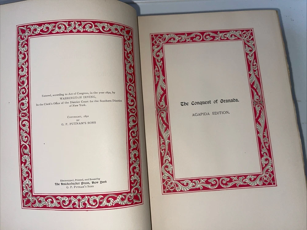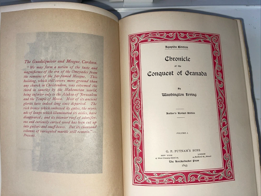Experience a piece of history with the 1893 "Conquest of Granada" by Washington Irving, Volume 1. This collectible edition, published by G.P. Putnam's Sons, is a treasure for both literary enthusiasts and history buffs. The fine binding and luxurious leather enhance the reading experience, while the illustrations add depth to the narrative. Immerse yourself in the classic tale set against the backdrop of Spain's war-torn landscape, beautifully rendered in this limited edition. Crafted in the United Kingdom and written in English, this piece is not only a work of fiction but also a slice of European literature and history, making it a valuable addition to any collection.