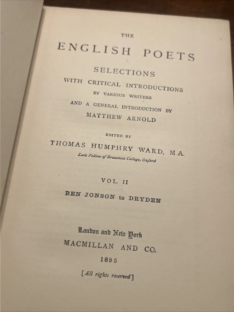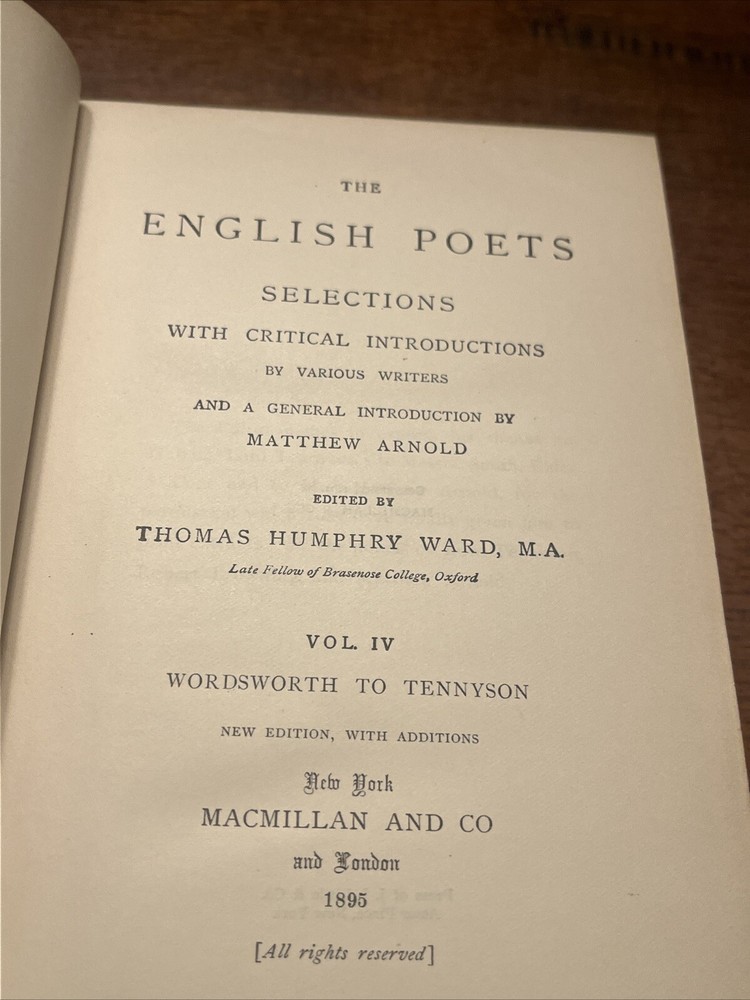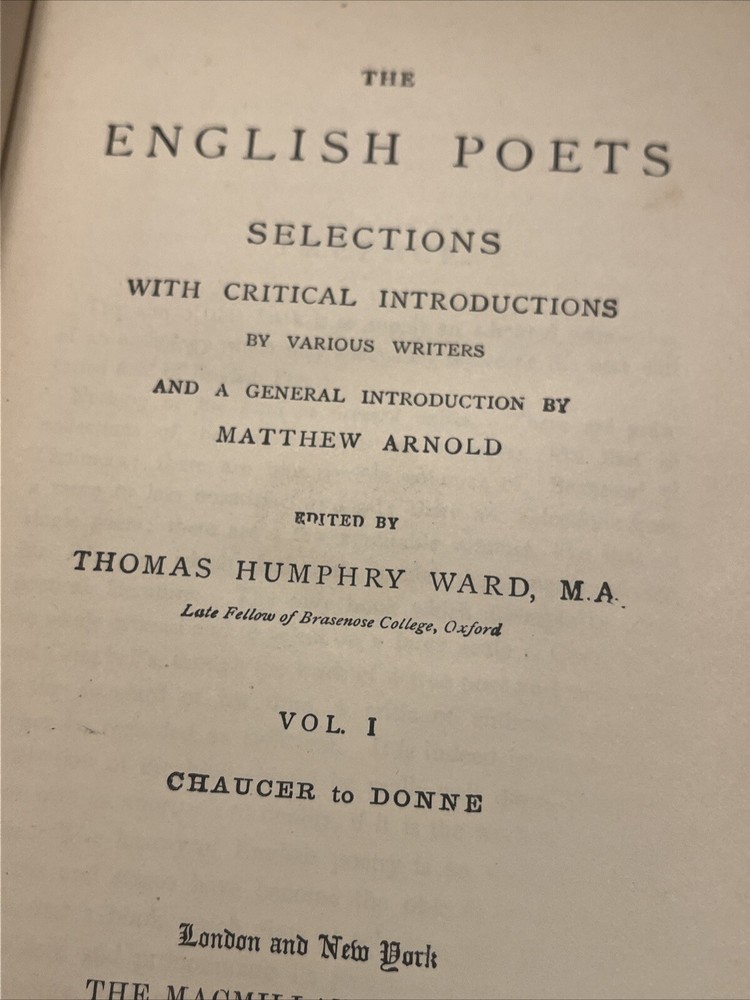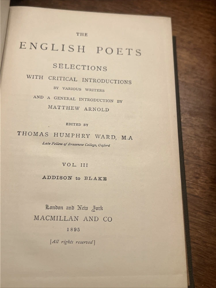 | Author | Thomas Humphry Ward; Matthew Arnold; Various |