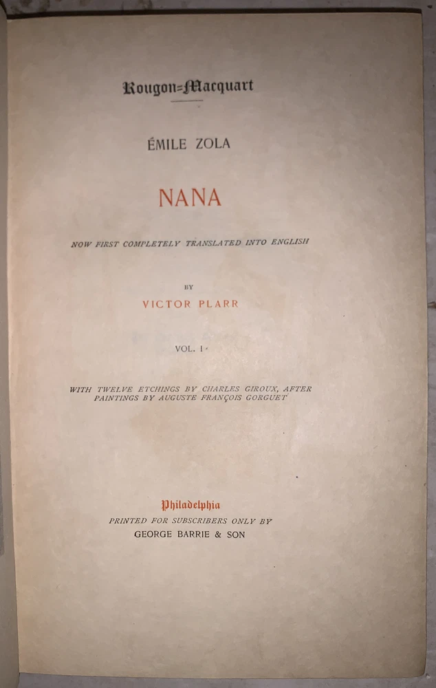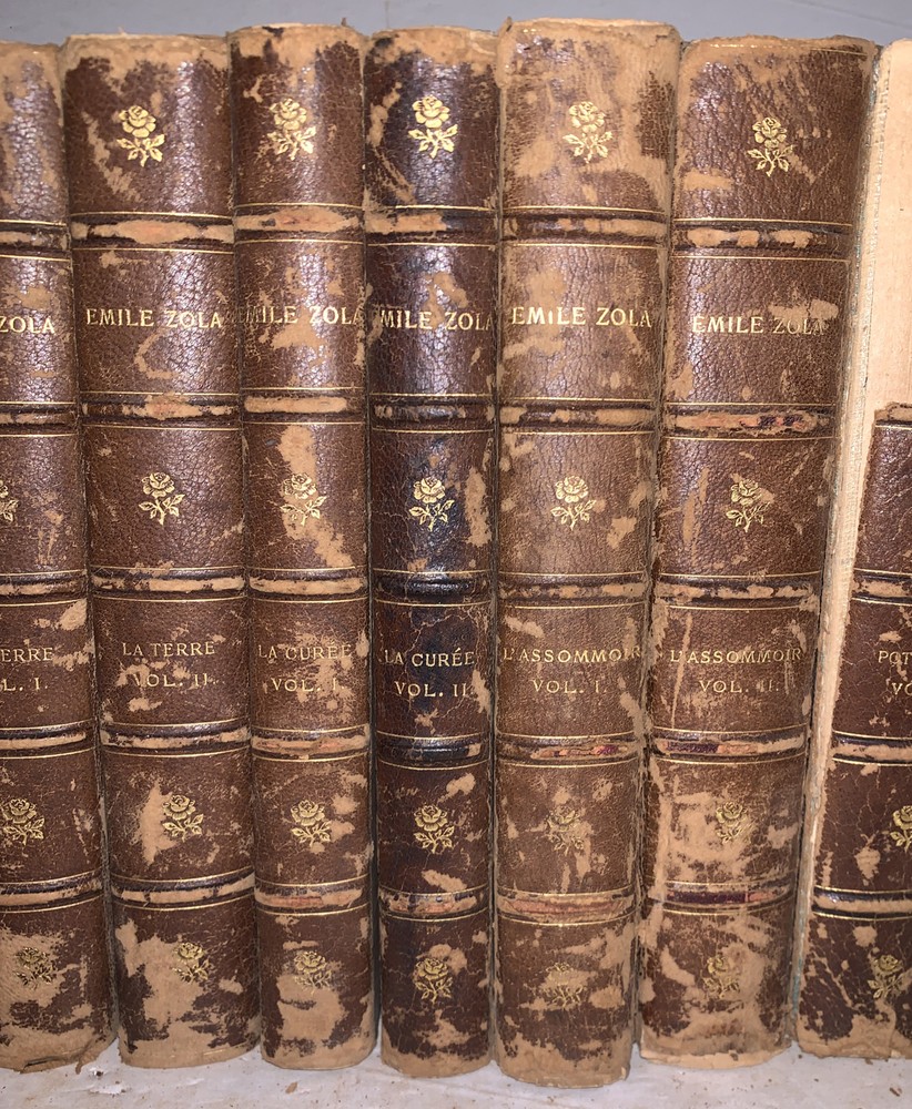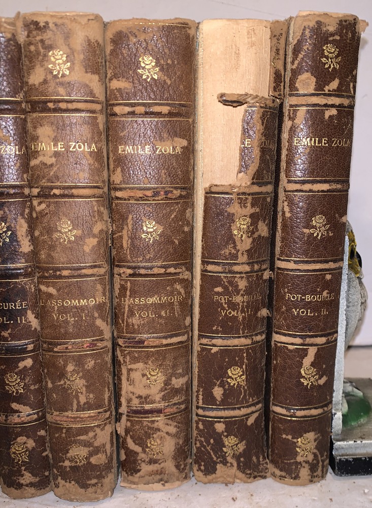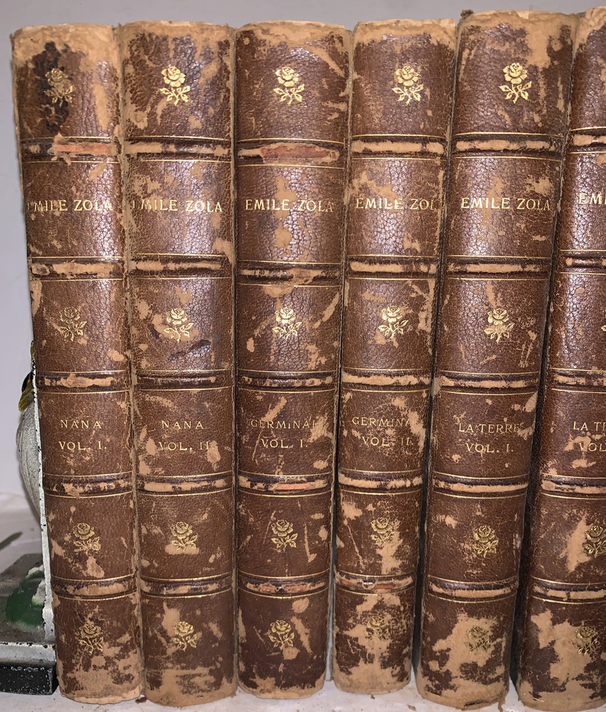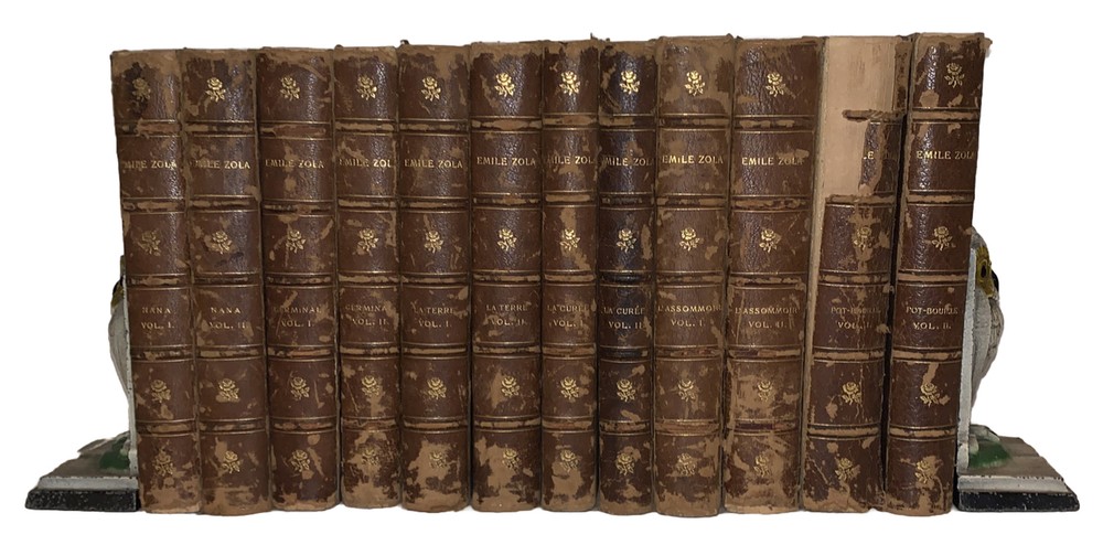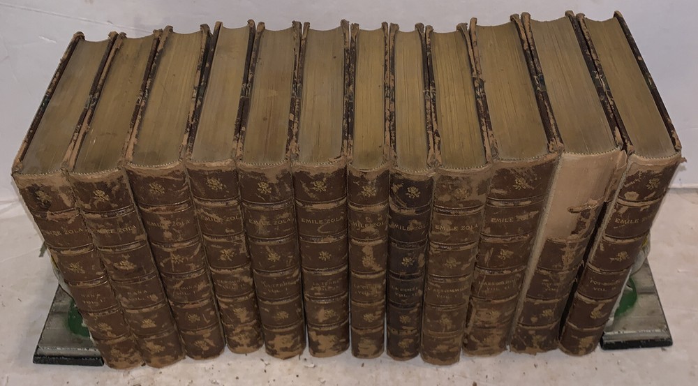 The Works of Emile Zola The Rougon-Macquart In 12 Volumes Philadelphia: George Barrie & Son ND, c. 1900 Limited Edition of 1,000 copies printed on Japanese Vellum, of which this is number 317. Twelve octavos, bound in the three quarter leather over marbled boards. All edges gilt. Marbled endpapers. Illustrated throughout. Some rubbing and wear, numerous hinges cracked, damage to the spines of a few volumes, else in good + condition. If you have any questions feel free to ask and don't forget to check out my other listings.