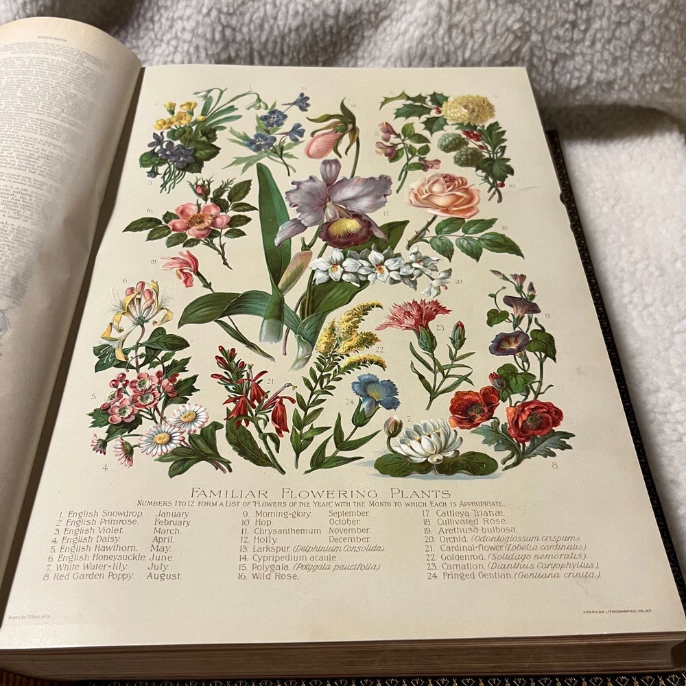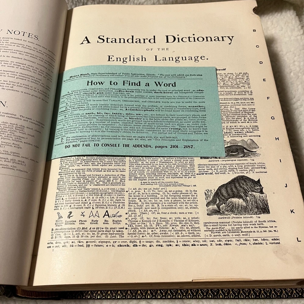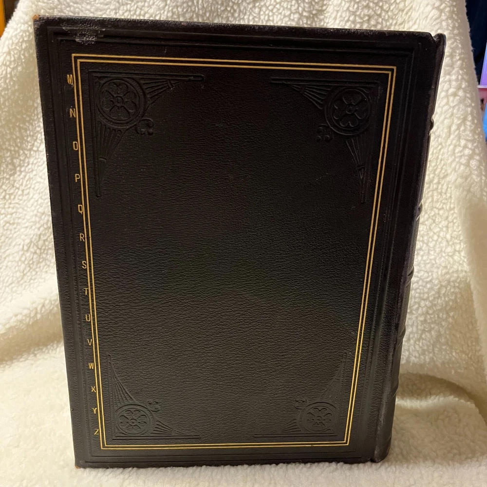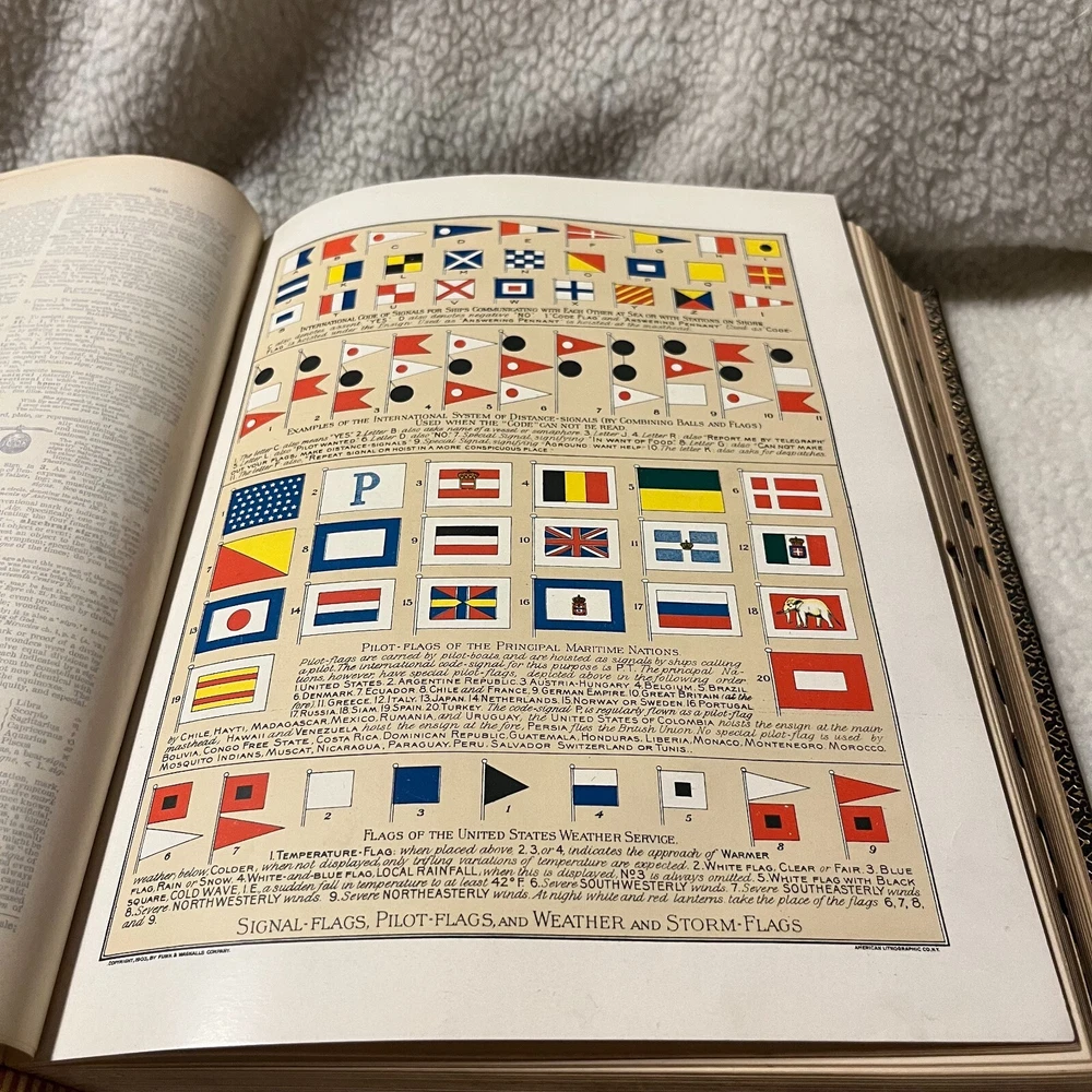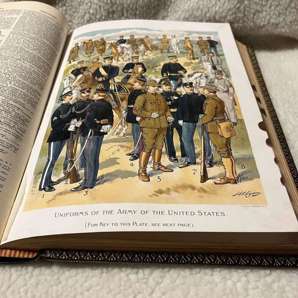 1908 FUNK WAGNALL 2 VOL STANDARD DICTIONARY ENGLISH LANGUAGE 20TH CENT SUB ED Beautiful Antique and Collectible 2 volume set of Funk & Wagnall Standard Dictionary of the English Language. Published in 1908 (117 years ago!) this is a special 20th Century Subscription Edition. It is leather bound, black, with embossed floral designs on both front and back covers. Gold toned detailing accents on front and back covers. The spines feature more beautiful gold toned design and lettering. Burgandy and cream colored end papers. Both fronts and backs have gold toned alphabetized tabbing for look-up ease. There is also alphabetized tab indexing directly notched into the book pages, which alternately state, " Improved Index", CH Denison's Pat", Pat Oct 7, 1884". Books are large and each measure approx: 12.5" high X 10" wide X 2.5" thick. Total weight of both books is approx 18.2 lbs. The two volume set features eight pages of the more than two hundred specialists and other scholars who, under the the supervision of Editor-In-Chief Isaac K. Funk, prepared this complete two-volume set which provides an informative dictionary of the English Language as it was at the turn of the century. Volume I comprised word definitons for letters A-L. Volume II comprises word definitions for letters M-Z. This complete set of two volumes is a New Edition Revised and Enlarged, and includes: Abridged Cyclopedia, Atlas Of The World with color illustrations, Universal Calendar, Appendix, Language Key, Glossary Of Foreign Words, Disputed Spellings and Pronunciations, Abbreviations And Contractions, Symbolic Signifigance of Flowers And Gems, and much more. The two volume set is beautifully illustrated throughout, with parchment overlays of color plates. This is, indeed a comprehensive and amazing reference work. There is a Numbered Book Plate which reads, "No. 151312 Property of" with lines to print name. Also included is blue colored paper insertion which details, "How to Find a Word". This 1908 two volume set is truly antique and collectible. A wonderful source of reference and a beautiful addition to any library. It would be a wonderful gift for graduates, writers, and all. Please read conditon notes and see photos. Please see my other items. I have a variety of great listings!