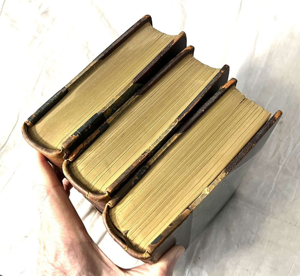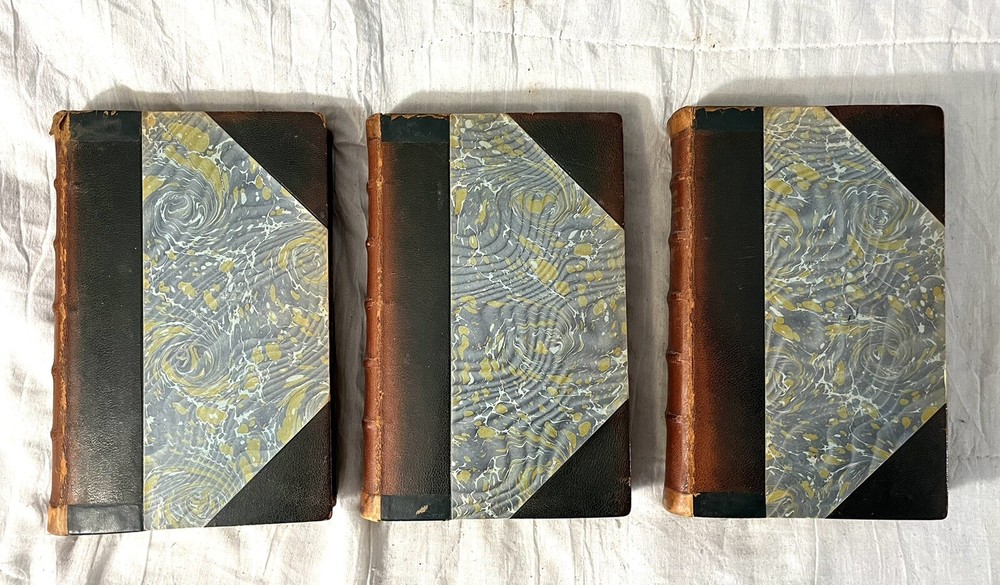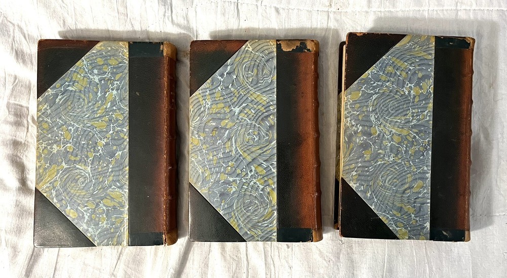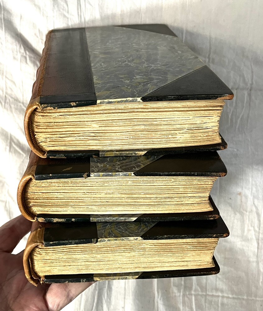 Good to Very good condition hardcover books. French text. Please be aware that for this heavy set of books, USPS Ground Advantage shipping might be less expensive in some cases than USPS media rate shipping. I offer both services in this listing. This 3 Volume set of books is from the personal library of Lincoln MacVeagh, former US ambassador to Spain, Portugal, Greece, Yugoslavia, South Africa, and Iceland. He was also US Minister to Greece. Many of these appointments were during the sensitive times of WWII. Exterior: 3/4 leather binding is clean tight and square. The leather straps top and bottom of the spines are somewhat crumbly. Five raised bands on the spine. Leather spine and corners. Marbled paper on boards. Gilt text on the spine. Top page edges gilt. Corner, spine end and spine edge wear. Brown leather spine back. Black leather showing front and back of the books. About 9-1/4” tall. Interior: pages are clean with no tears. Pages have toned margins. Lincoln and Margaret MacVeagh bookplate on all 3 front pastedowns. Volume 1: 1911 stated 6th edition. gutter cracked behind the front free endpaper. Ambassador Lincoln MacVeagh signed the second free page. I found a couple pages with some marginalia. Third blank page from the back has three lines of pencil handwriting at the top. Front endpaper has a bottom corner crease. 577 pages. Volume 2: 1911 stated 5th edition. Pages clean with no handwriting tears or creasing. 671 pages. Volume 3: 1911 stated 4th edition. Pages clean with no handwriting tears or creasing. 687 pages.