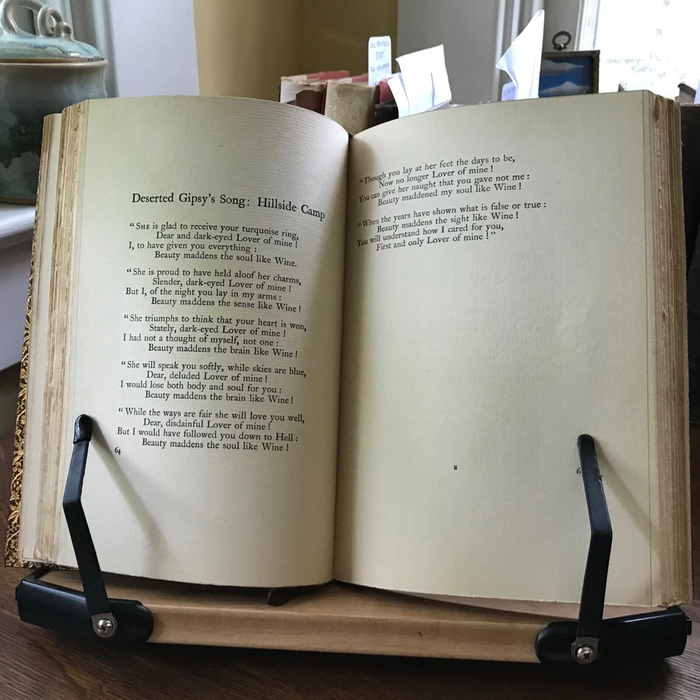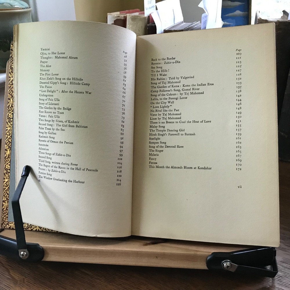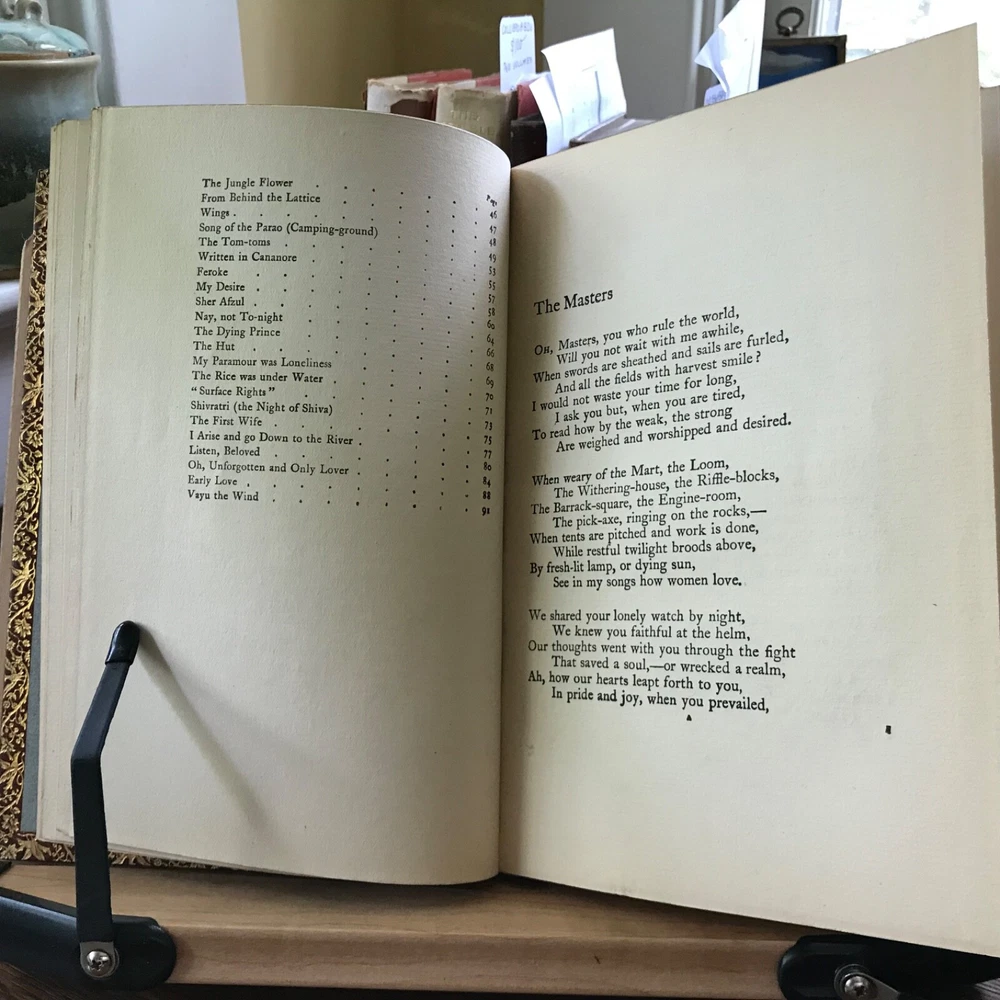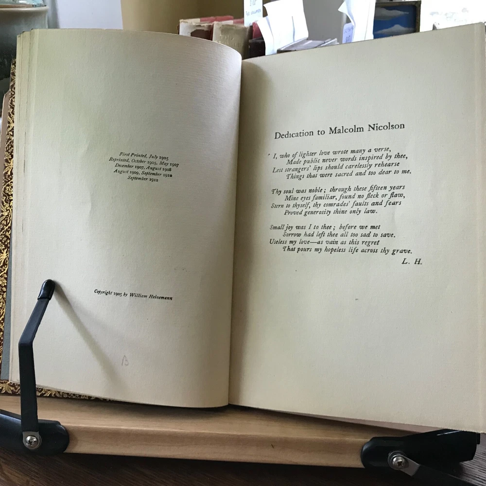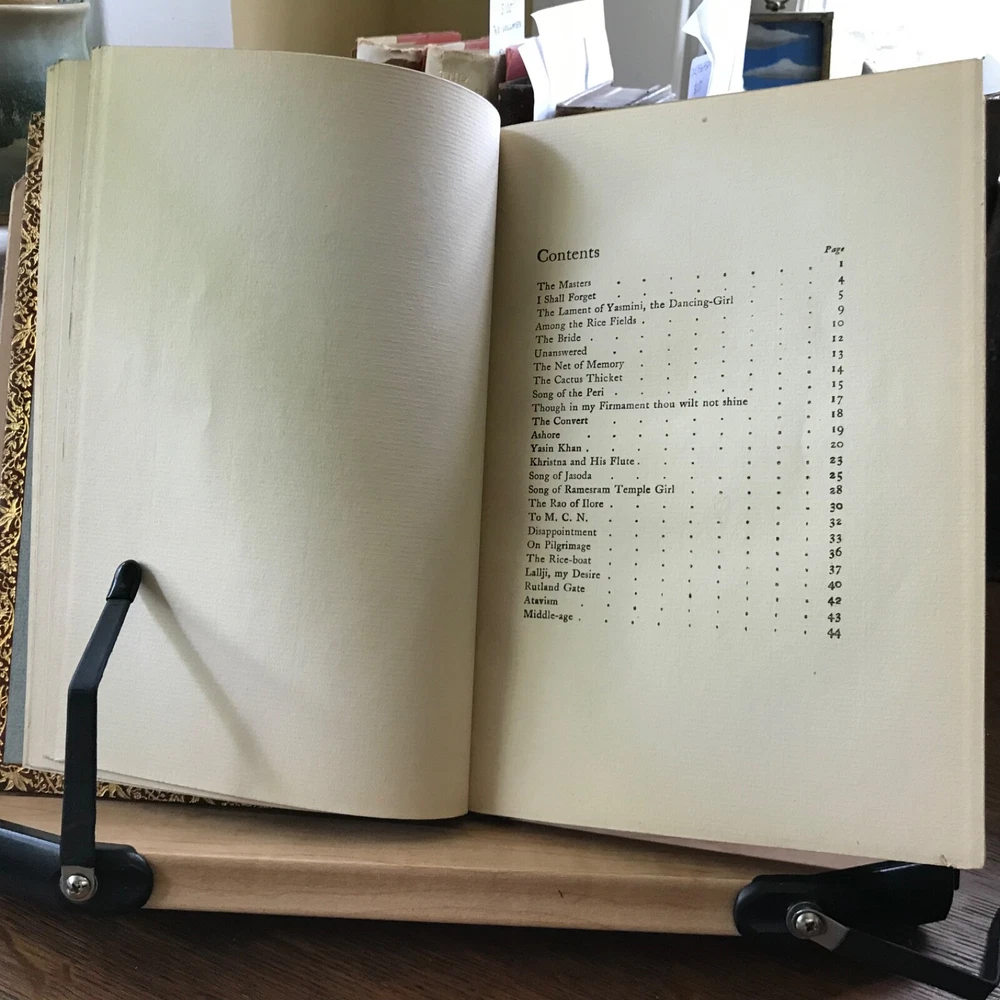 Three Volume Set of Violet Nicholson’s Poetry: Stars of the Desert, Laurence Hope, William Heinemann, London, 1911, 152 pp. Indian Love, Laurence Hope, William Heinemann, London, 1912, 92 pp, frontis portrait. The Garden of Kama And other Love Lyrics from India, Laurence Hope, William Heinemann, London, 1912, 174 pp. Full leather, signed bindings of Bretano’s, New York, 8.25 x 6”, 8vo. All in good condition. Lovely signed Bretano’s bindings with delicate gilt tooling and dentelles. Leather remains soft and clean. A few nicks to the surface of leather with minor scuffing to tips and end bands. Top edges gilt. Inner gilt dentelles have toned the edges of the front fly leaves. Light toning to interiors with minimal foxing, if any. Brown silk book markers intact, albeit slightly frayed at the bottoms. Free of known markings. Bindings tight and intact. Please see photos. Violet Nicholson (1865-1904) otherwise known as Adela Florence Nicolson was an English poet who wrote under the pseudonym Laurence Hope. Her poems often used imagery and symbols from poets of the North-West Frontier of India and the Sufi poets of Persia. She was among the popular romantic poets of the Edwardian era. COLL1912AFJN