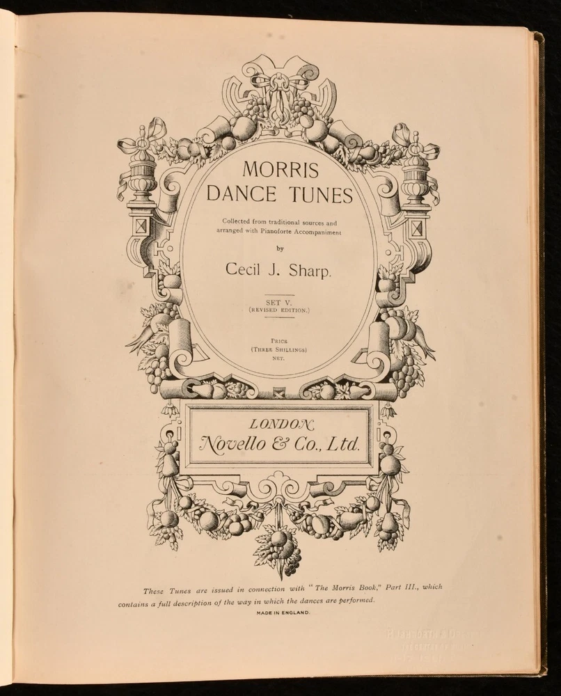 Click here to see our other books! Morris Dance Tunes 10 Sets Cecil J. Sharp; Herbert C. Macilwaine 1912-1924 Novello & Co : London 12" by 9.5" [4], 16, [4], 14, [4], 19, [6], 17, [4], 29, [4], 27, [4], 20, [2], 21, [2], 19, [2], 21, [6], 13pp SUMMARY A charming collection of ten sets of Morris Dance Tunes and Jigs. Overall Condition: Very Good This book weighs 1.5 KG when packed UK Postage: £ 3.99 US Postage: £ 22.99 EU Postage : £ 16.99 European Postage: £ 17.99 Asia Postage: £ 22.99 Worldwide Postage: £ 28.99 DESCRIPTION This is a volume of ten sets of Morris dance tunes with A Collection of Six Morris Dance and Jigs with pianoforte arrangements by Arnold Foster bound within one volume. The Morris dance tunes were collected from traditional source and arranged for Pianoforte by Cecil J. Sharp and Herbert C. Macilwaine. Some of the dances included in the volume are The Flowers of Edinburgh (Handkerchief Dance), Princess Royal (Jig) and Sweet Jenny Jones (Stick Dance). With a sheet of the dances typed and stuck to the first page. CONDITION In quarter calf binding with cloth covered boards. Externally, smart with some marks to the boards. Internally, firmly bound with bright and clean pages. Overall Condition: Very Good GLOSSARY OF TERMS Overall Condition (Dustwrapper condition rating is shown after that for the book itself, where a dustwrapper is present) Fine - Very well preserved copy showing very little wear Very Good Indeed - Only one or two minor faults, really a very attractive copy Very Good - Quite a wide term meaning no major faults but probably several smaller ones often expected given the age of the book, but still a respectable copy Good - Meaning not very good. Some more serious faults as will be described in the condition report under 'condition' Good Only - Meaning one or more faults that could really do with repair Fair - As with good only above but with other faults leaving a compromised copy even after repair Poor - Really bad and possibly seriously incomplete. We only sell books in this condition where their rarity or value makes them attractive none the less. Major defects will be described. GUARANTEE We offer a full money back guarantee on our descriptions. Please ask for details and conditions. We prefer PAYPAL. If you pay via PAYPAL we will post the item off the same or the next working day with the postage you have selected. Please note we cannot accept USD cheques