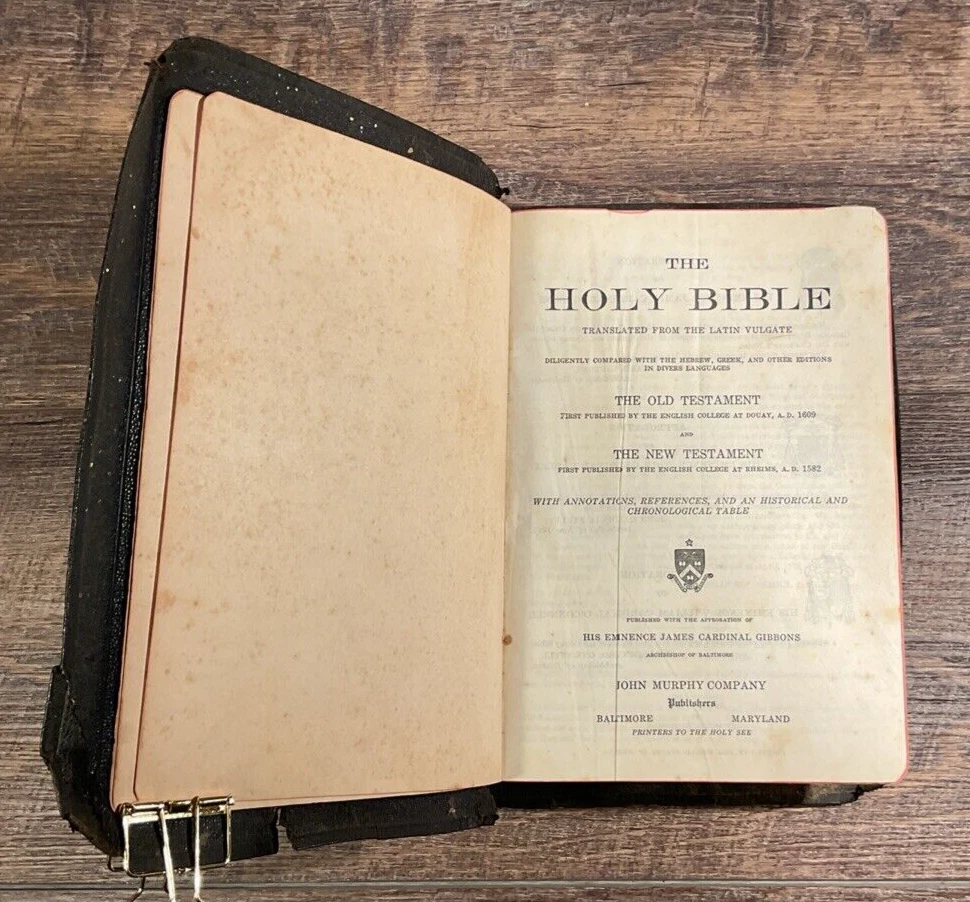 This antique Douay Version Bible is a true treasure! The craftsmanship is stunningβeven with its aged leather cover showing slight wear, the binding remains solid. Published by John Murphy Company, its historical value is unmatched, making it perfect for collectors or as a heartfelt gift. The pages are well-preserved, and the timeless design adds charm. A rare find thatβs both beautiful and meaningfulβany Bible enthusiast would cherish this piece of history. βοΈπβ€οΈ