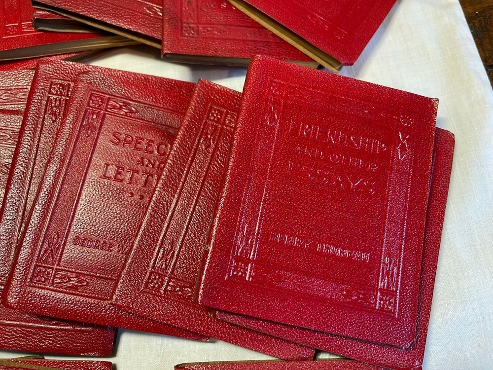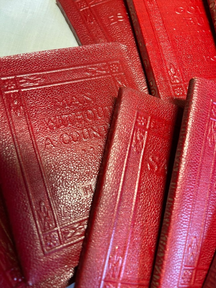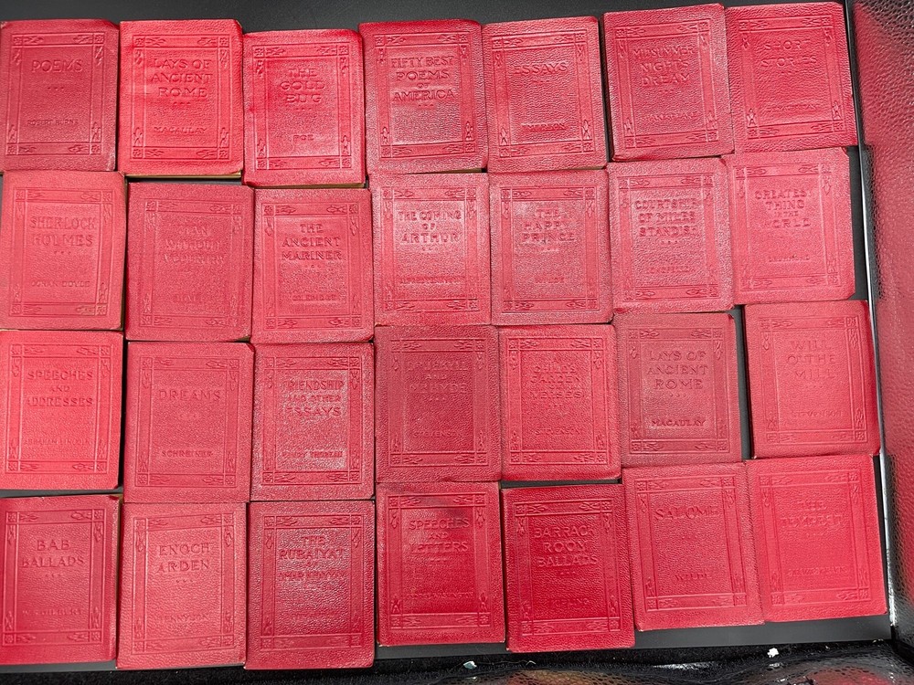 Little Leather Library Published by Robert K Hass in 1920 New York. This is your chance to get a whole little library of matching mini books. All 26 are in wonderful, vintage condition. Each measures 3 1/4" x 4" I also have a 2nd, smaller collection of 8 of these little red books. Any questions, please ask. HIGH VALUE & GOOD QUALITY ~From a Private Estate Collection~ This fine item is offered with a fair and reasonable fixed price. Our photos detail this item to justify the asking price. If you need more information, please don't hesitate to ask, & we will do our best to comply. We do not guarantee the age of any piece we sell as we are not experts on age and can only describe the items to the best of our ability. The descriptions are solely included to assist buyers in finding the items they seek, are not necessarily an accurate description of the item in all cases, although we strive to be as accurate as we can. Ultimately the pictures provided serve as the description. Please keep in mind that anytime you purchase a vintage or antique item, it might not be perfect and may demonstrate characteristics of age and use. Make sure that you read descriptions and look at the pictures before committing to a purchase. Please feel free to contact us if you have any questions about the nature and condition of any item. Refunds will not be given for items being of age. We take our reputation very seriously. Buying and selling online, we know the value of trust. If for ANY reason you are not satisfied with your purchase, please contact us so we have a chance to resolve your issue. We offer 100% Satisfaction Guarantee - ALWAYS! TAKE A LOOK AT OUR OTHER ITEMS FOR SALE AND ADD US TO YOUR FAVORITE SELLERS LIST!! This is just a sampling of some of the fantastic treasures you will find at Queens Avenue USA. There are many things we own that we probably wouldn't sell if we didn't have a kid in college this fall. There are many beautiful items that we happen across and think, boy, we sure would like to keep that for ourselves but instead, …we are passing these wonderful lovelies on to you. Priorities, right? Tuition, room, board, books. Go Bears! If free shipping is included in the buy it now price for Domestic Shipping & a best offer is accepted, we will add shipping to that price. The shipping price reflects the actual expense of transporting this item as safely as I can and I never charge a handling fee. All items are shipped with great care. I proudly use recycled packaging when possible. If you decide to purchase and are pleased with this item, Please Leave Positive Feedback. Thank you for visiting our store and please come back. EZ-TS