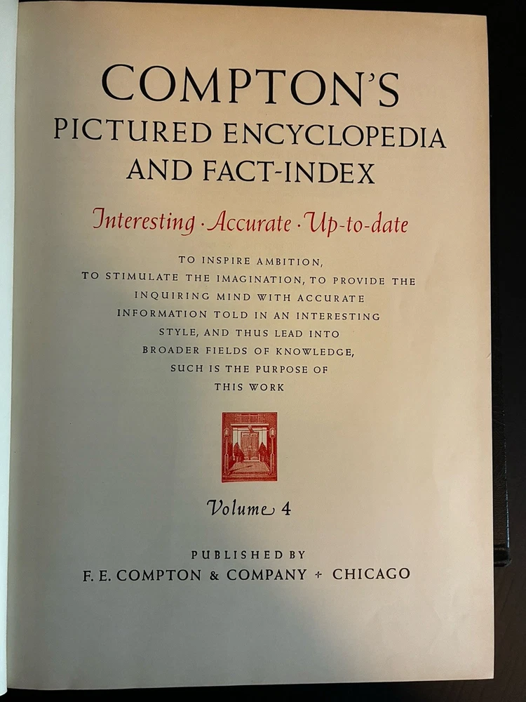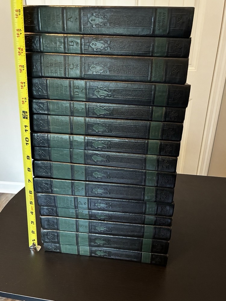 Additionally, the books were kept in a climate controlled room so there is minimal odor of mustiness. No mildew present on cover or pages. Explore the vast wealth of knowledge with the 1949 Complete Set of Compton’s Pictured Encyclopedia and Fact-Index, consisting of Volumes 1-15. Published by F E Compton & Co, this encyclopedic collection is a treasure trove of information for enthusiasts and collectors alike. The set is bound in hardcover with an embossed leather cover, reflecting a time of classic craftsmanship. Presented in English and originating from Chicago, USA, this original print edition from 1949 is a testament to the era's reference materials. Ideal for those with an interest in antiquarian books or seeking to expand their vintage library, this set promises to be an impressive addition to any collection.