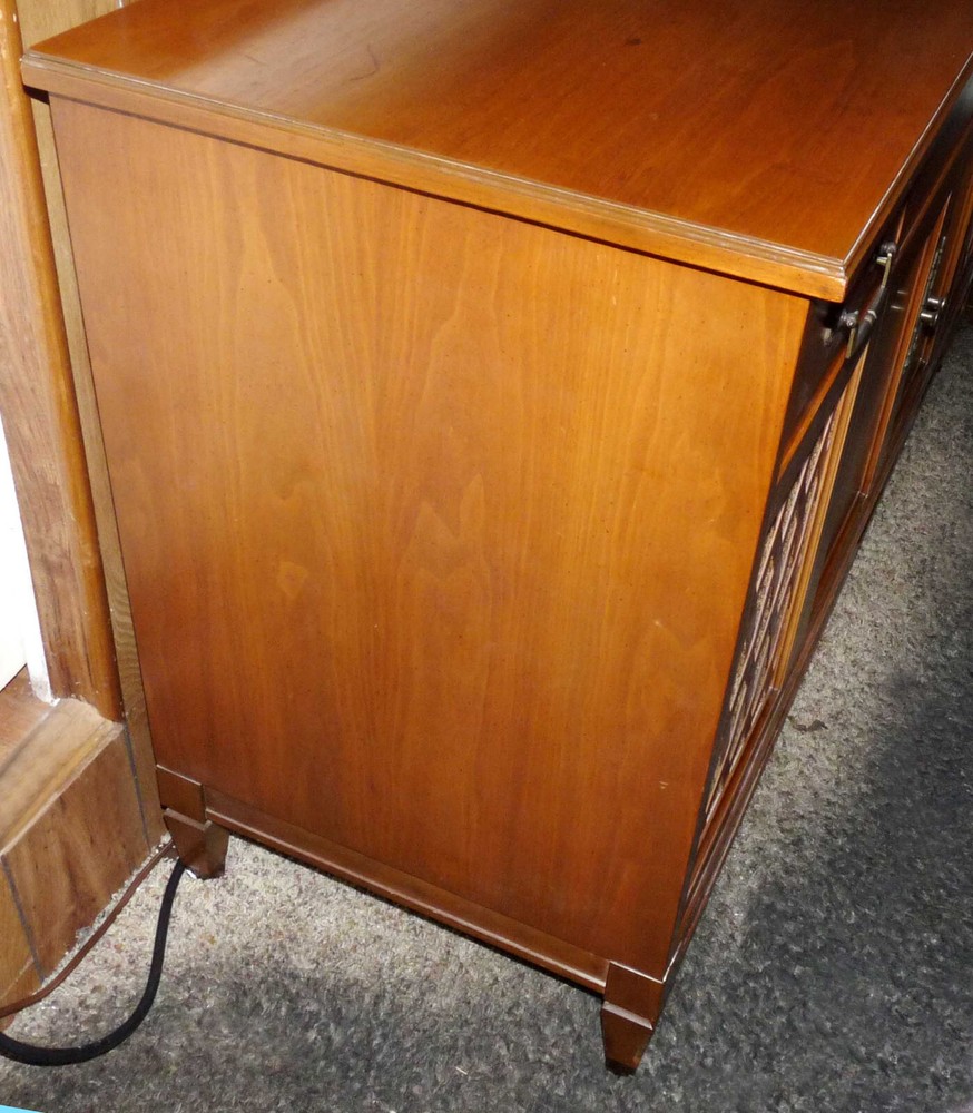Please feel free to make an offer. The heart of this beauty is The Fisher 481A amplifier that features a quad of 6BQ5’s. This is the model E-49-IP, Italian Provincial in Distressed Walnut. The cabinet is in very good condition with a little wear from over 60 years of occasional enjoyment. Tuner, record changer, amplifier, controls and speakers are working great. I have not serviced this gem, although it appears to have been well maintained. It measures about 51 ½ x 30 x 18 ½ inches. This console sold for $645 in 1964, which adjusted for inflation would be over $6,500 today. This console is located in Pismo Beach, California. You could stay a night and make it a fun trip from just about anywhere in California. I’d prefer a pickup, but I could deliver within 300 miles (inquire.) Due to age this item is sold AS-IS for parts or repair. I get lots of e-mail from people asking questions that are fully answered on the page. You can also help me by researching the item on Google or Ebay. I am not an expert on the items I sell. Be sure to check out my other similar auctions. Most of the items I sell have been in storage or in houses for many years and as a result may have odors, such as mildew, mold or smoke. Please see image(s) for details. From the Fisher Brochure (for reference only) Items are generally shipped quickly. If you have special packing or shipping requirements or suggestions, you MUST contact me before sending payment. It's not fair to me when buyers send the payment with a note to double box the item or flatten the box. While I am happy to accommodate such requests, they add size and weight to the package and increase the shipping cost. International bids are welcome on most items. Do not even think about asking me to declare it as a gift or the value of an item less than the sale price. All customs forms will be accurately filled out. Payment is to be made using eBay Managed Payments. When you check out through eBay, the item will be shipped to the name and address that you used. If you have moved or wish to ship to another address, update your shipping information with eBay before you send payment. If a shipping service you would prefer is not listed, please ask before you pay. I may be able to add other shipping options. I have made and do make mistakes. I use eBay’s shipping calculator - if I enter the incorrect weight or dimension, the shipping difference could be significant. If that does happen, let me know ASAP so we can make things right. I don’t pack boxes in advance to get exact weights because I offer combined shipping. I try to charge only actual shipping cost. Please be fair to me and all eBay sellers and at least give us a chance to fix problems before you start a return, leave feedback, make eBay claims or leave detailed seller ratings. Final word - I want ALL my customers to be satisfied, so if you are not, e-mail me before you leave feedback or file a claim and give me a chance to make you satisfied. Good Luck!