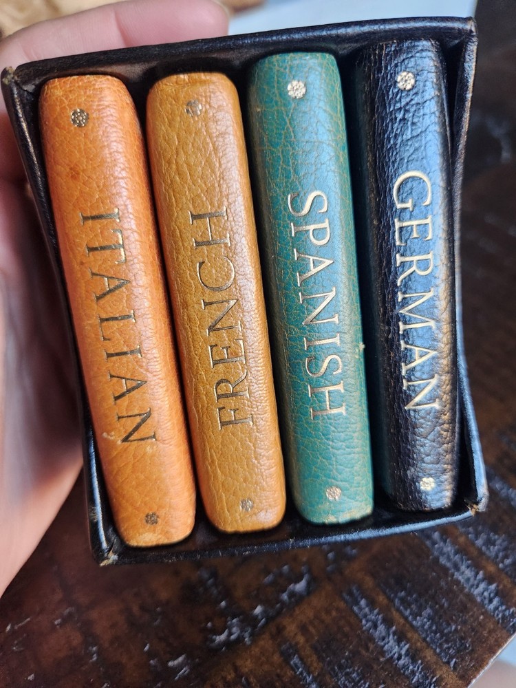 1964 Geoffrey Parker Burgess & Bowes Midget Mini Leather 4 Travel Dictionary Set