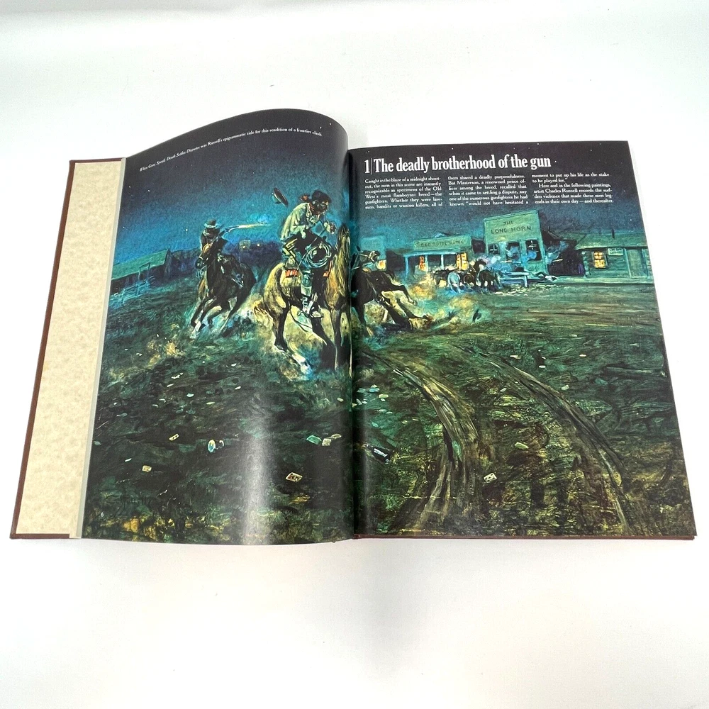 DETAILS Publisher: Time-Life Books Series: The Old West Publication Year: 1974 Volume: 8 Title: The Gunfighters ISBN: 0809414791 # of Pages: 240 Language: English Binding: Hardcover; embossed faux leather bound. Condition: Good condition with gentle signs of wear and age. Faux leather cover is lifting on the upper part of the spine (see pic). About: Faux leather bound book series chronicling the history of the American Wild West. Full color photos and illustrations. Ornate bookplate cover design unique to each book. Other books in the series (available through my store as additional listings) The Cowboys The Indians The Soldiers T he Trailblazers The Railroader s The Forty-Niners The Pioneers The Expressmen T he Townsmen The Great Chiefs The Rivermen The Texans The Loggers The Chroniclers The Miners The Canadians The Frontiersmen The Alaskans The Ranchers The Women T he Scouts The Gamblers T he End And The Myth Due to the weight of these books, I am not able to provide combined shipping discounts, only volume discount pricing to offset the cost of shipping from Ontario, Canada. Please view all pics and hover to zoom so that you can see all potential defects.