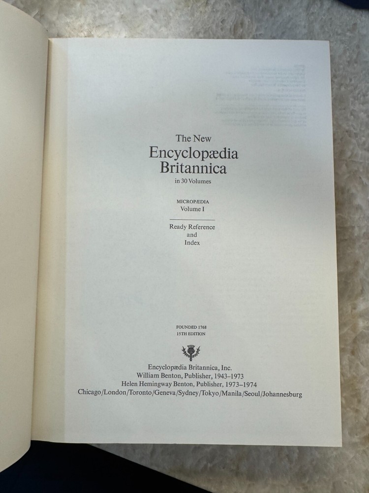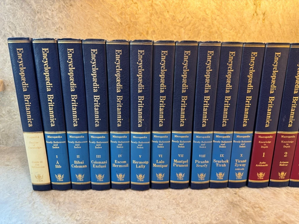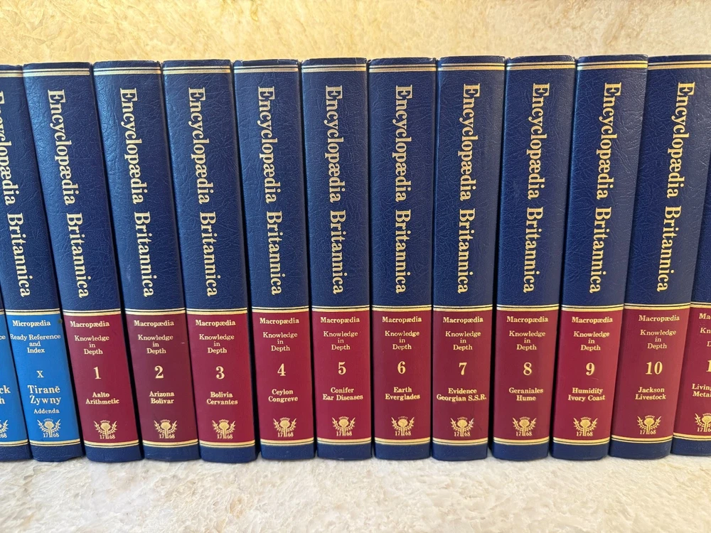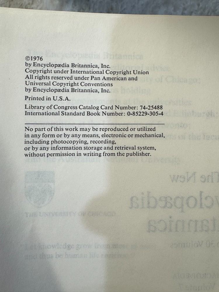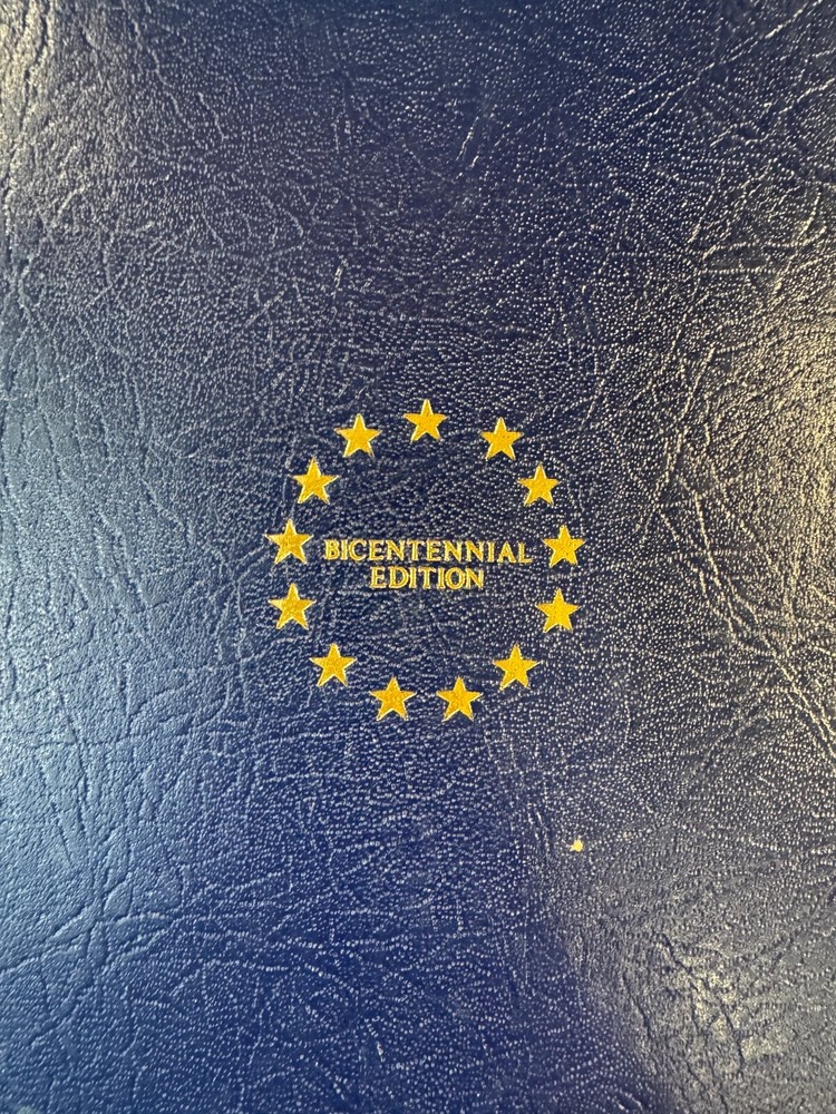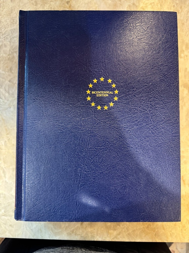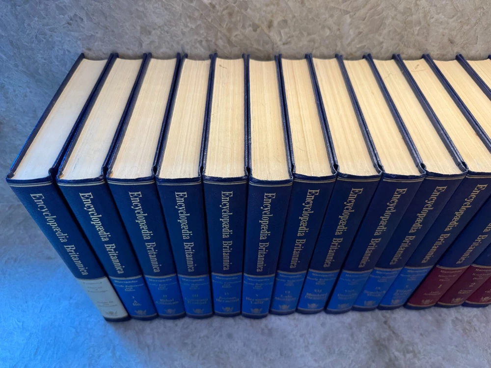 This RARE 1976 Bicentennial Edition Encyclopedia Britannica 15th Edition Full Set includes 30 volumes in leather binding. Published by Encyclopedia Britannica, Inc, this set features contributions from multiple authors and covers a wide range of topics. This collectible edition is a valuable resource for those interested in historical and comprehensive information, making it a prized possession for book enthusiasts and collectors alike. The condition is excellent. Most have strong tight spines that feel like they have never been opened. The main flaw in the entire set is some markings on the top of a few book pages. See in pictures. Otherwise, this set is VERY GOOD condition and only looks a few years old...not almost 50 years old. Don't miss out on the RARE chance to own a full Bicentennial set. Buy before someone else does.