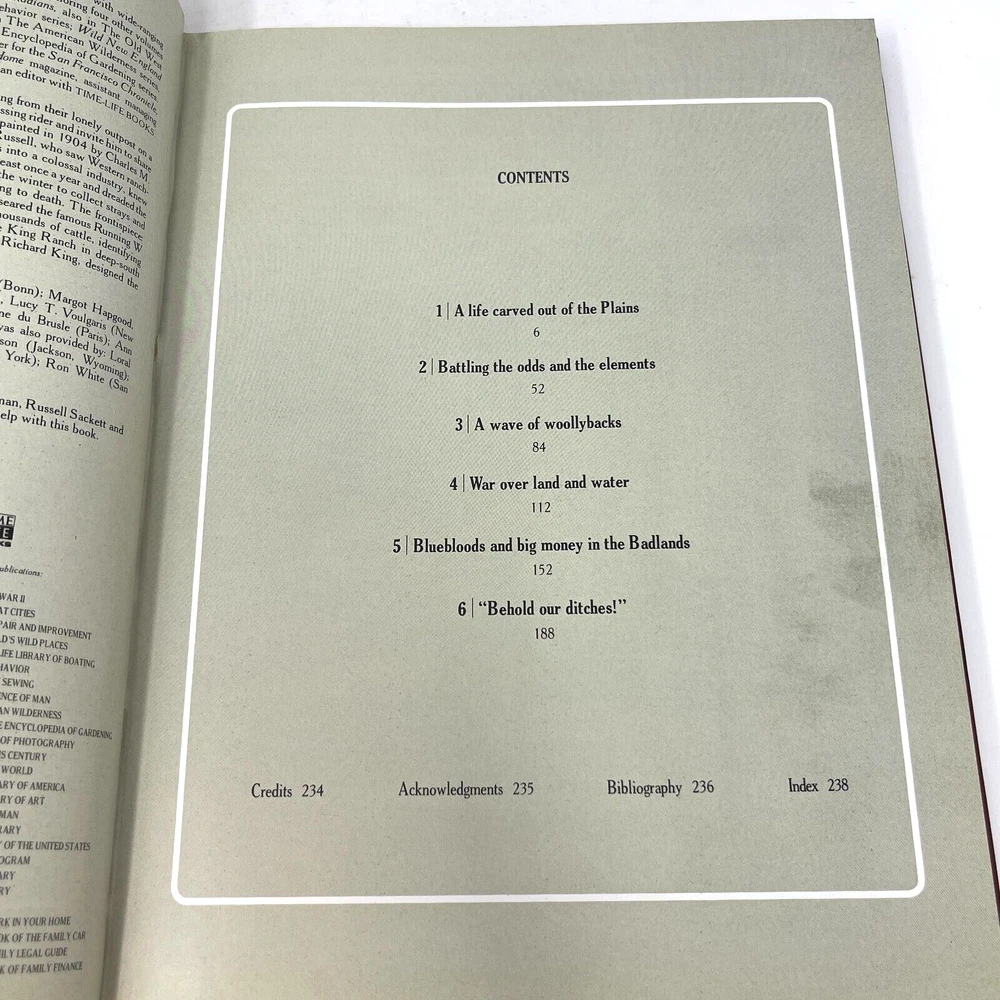 DETAILS Publisher: Time-Life Books Series: The Old West Publication Year: 1977 Volume: 21 Title: The Ranchers ISBN: 0809415089 # of Pages: 240 Language: English Binding: Hardcover; embossed faux leather bound. Condition: Excellent condition with minor, gentle signs of age. About: Faux leather bound book series chronicling the history of the American Wild West. Full color photos and illustrations. Ornate bookplate cover design unique to each book. Other books in the series (available through my store as additional listings) The Cowboys The Indians The Soldiers T he Trailblazers The Railroader s The Forty-Niners The Pioneers The Expressmen T he Townsmen The Great Chiefs The Rivermen The Texans The Loggers The Chroniclers The Miners The Canadians The Frontiersmen The Alaskans The Ranchers The Women T he Scouts The Gamblers T he End And The Myth Due to the weight of these books, I am not able to provide combined shipping discounts, only volume discount pricing to offset the cost of shipping from Ontario, Canada. Please view all pics and hover to zoom so that you can see all potential defects.