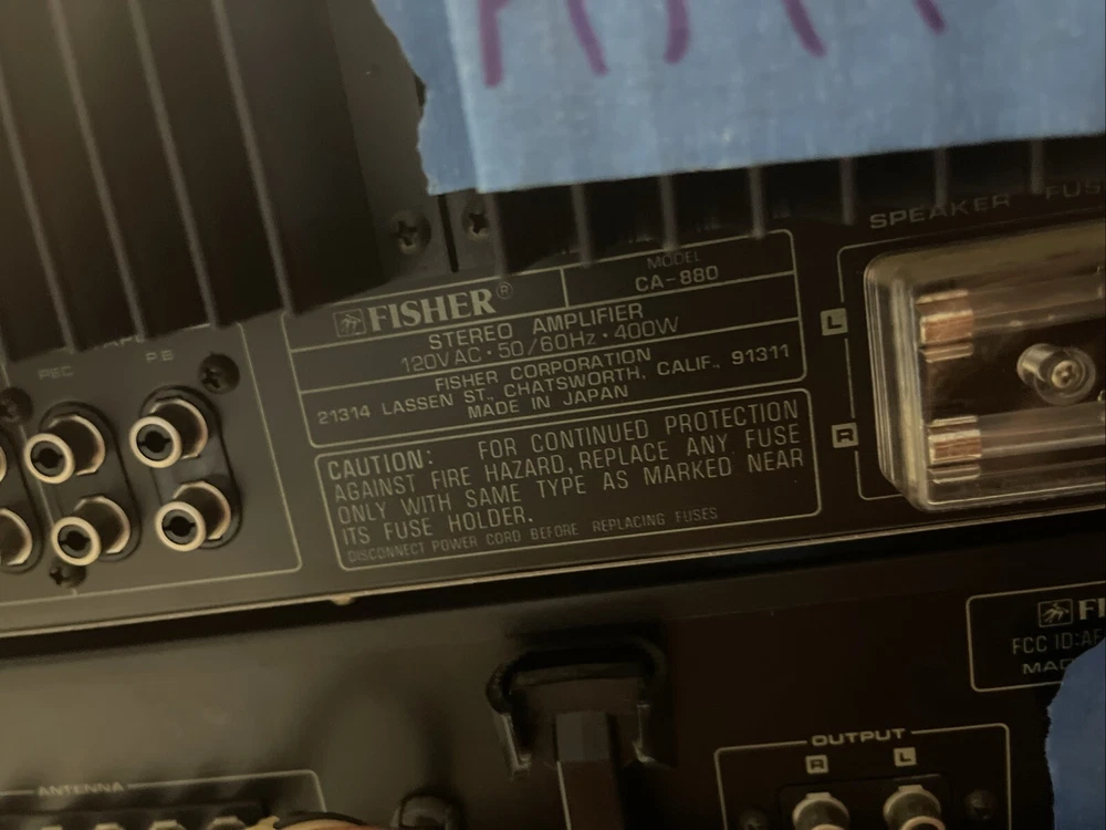 Very clean never been serviced or any issue On same shelf past 40 years Sale is for 3 pieces Included CA 880 amp Fm 660 amfm tuner And eq 2322 All in immaculate condition Clean no scratches or dings All light and functions are perfect Will have the matching turntable On our other sale Shipping is free to lower 48 states only No shipping to Hawaii Alaska, Puerto Rico, Virgin Islands, Guam shipping cost Will be extremely high Fisher CA-880 Stereo Integrated Amplifier (1981) Specifications Power output: 100 watts per channel into 8 Ω (stereo) Frequency response: 20Hz to 20kHz Total harmonic distortion: 0.09% Damping factor: 40 Input sensitivity: 1.6mV (mic), 2.5mV (MM), 150mV (line) Signal to noise ratio: 60dB (mic), 70dB (MM), 100dB (line) Output: 150mV (line) Dimensions: 17-1/3 x 13-1/2 x 5-1/4 inches Weight: 25lbs Year: 1981