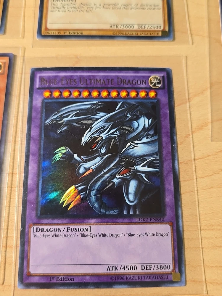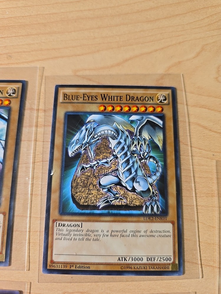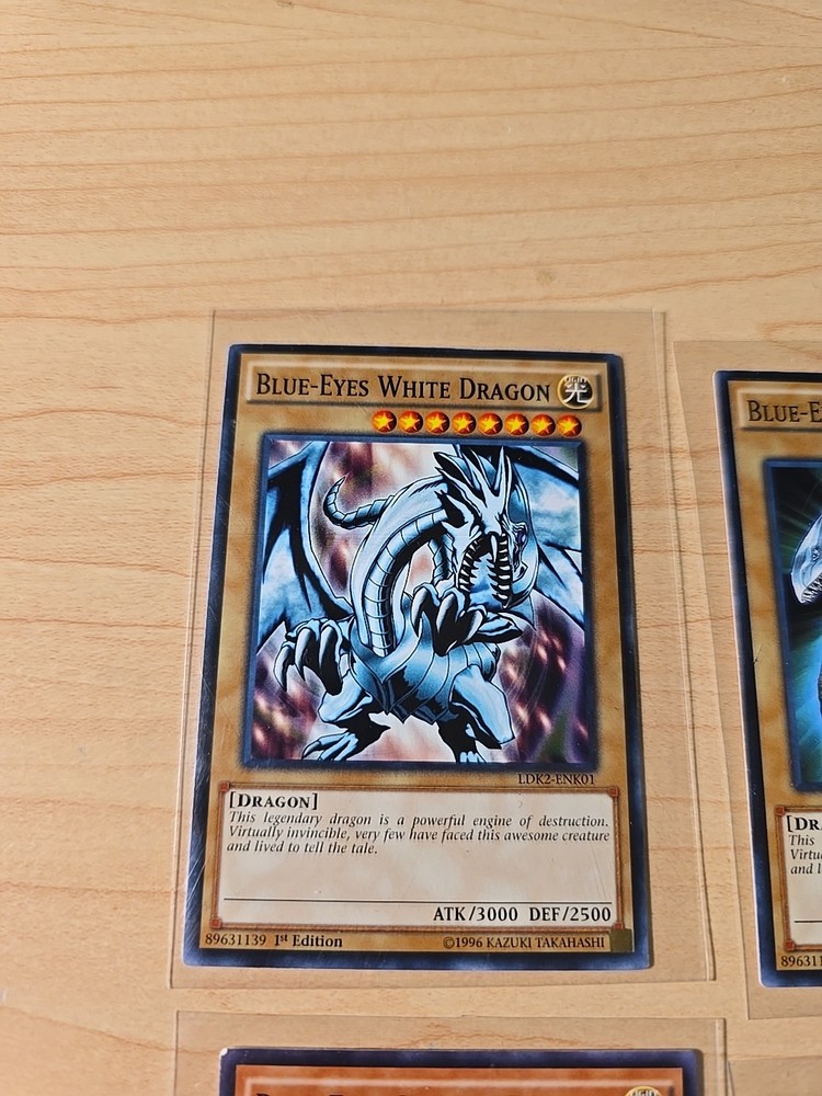 Dive into the world of high-flying fantasy with the 1996 Blue-Eyes White, Shining and Ultimate Dragon 5 YuGiOh Card Set 1st Editions. Each card in this set features the majestic Blue Eyes White Dragon, a staple creature in the Yu-Gi-Oh! TCG universe, bringing a touch of mystique and power to your collection. Crafted by Konami, these limited edition cards come with a holographic finish that captures the essence of the game's vibrant artwork. The set includes a mix of attributes with the dominant colors being blue and white, ensuring these cards stand out in any deck or display. Cherish the legacy of the Yu-Gi-Oh! TCG with this iconic set from the game's early days.
