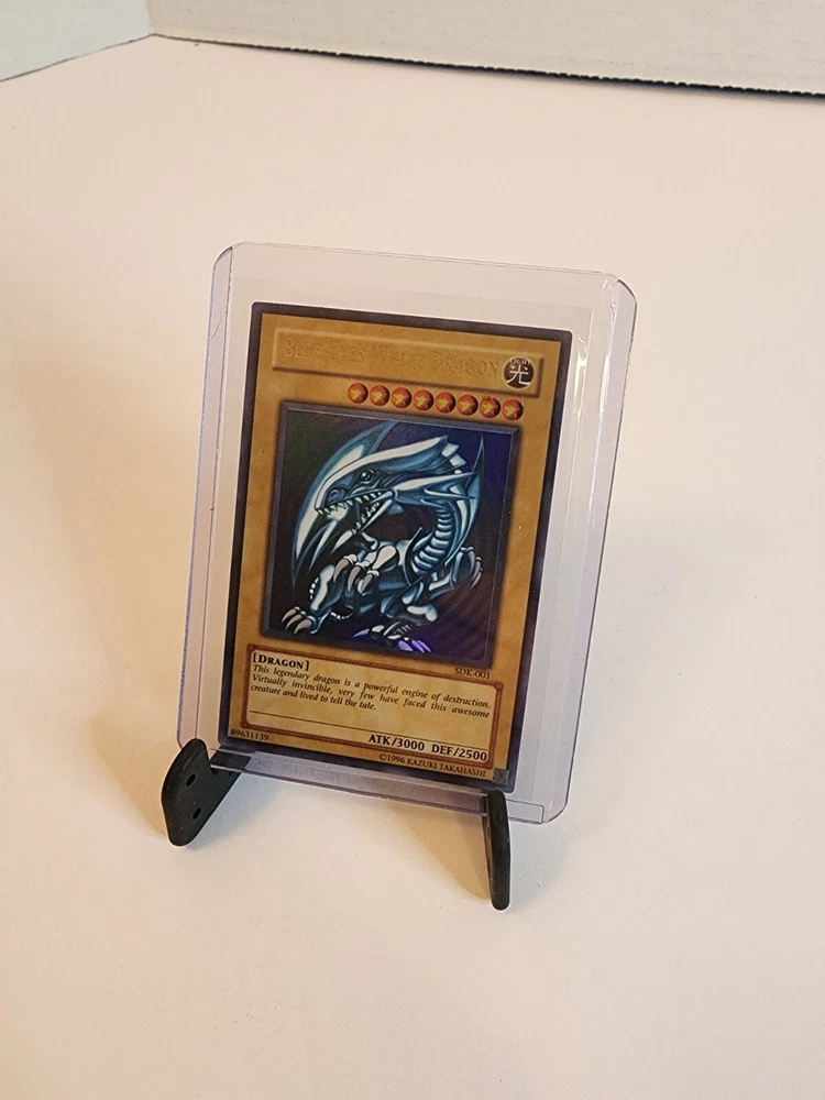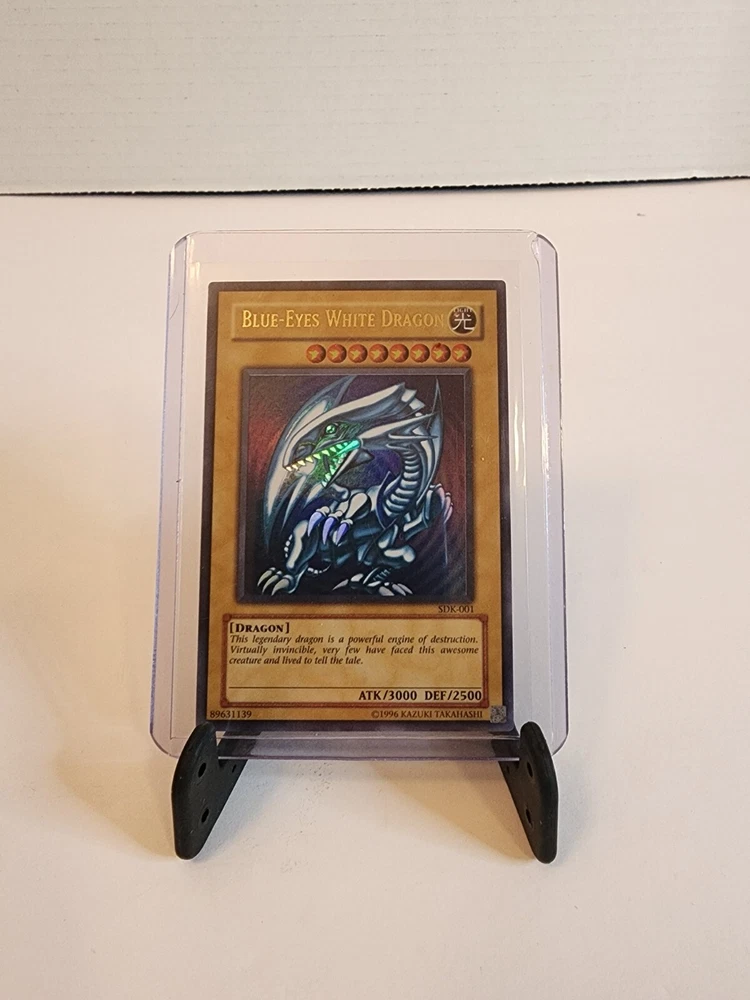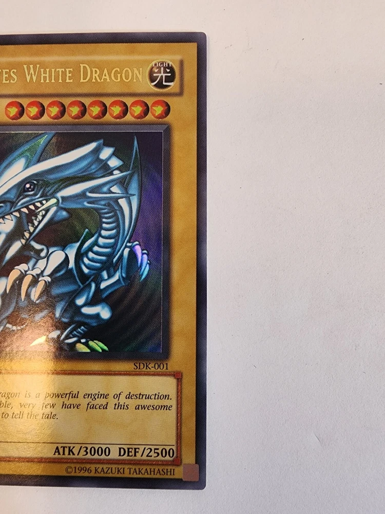 This rare and highly sought-after card is a must-have for any Yu-Gi-Oh! collector or player. Featuring the iconic Blue-Eyes White Dragon, this card is from the 1996 Starter Deck: Kaiba set and has a foil finish. It is an Ultra Rare card with a card number of SDK-001 and is in English language.With an attack power of 3000 and defense/toughness of 2500, this card is a formidable addition to any deck. Used Condition. Normal wear and tear