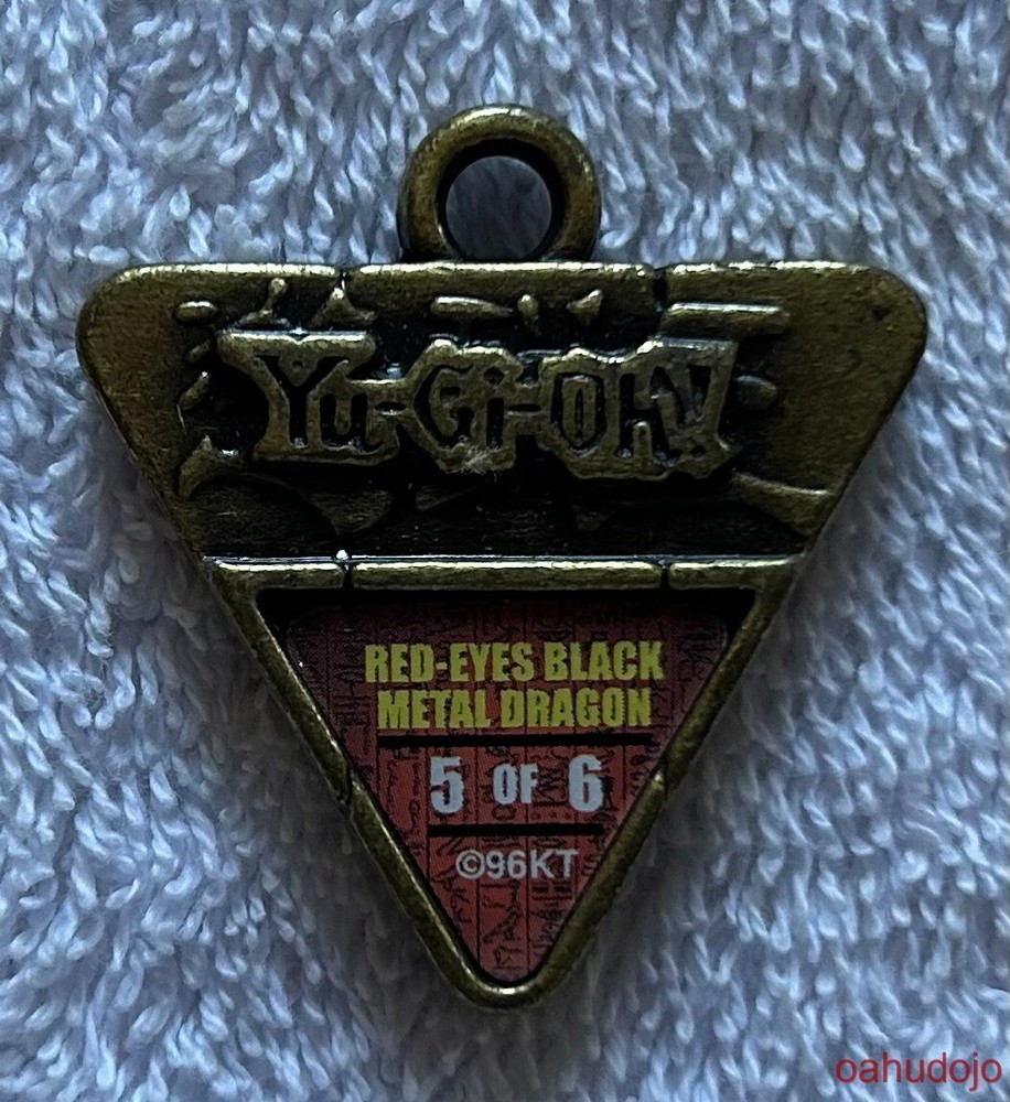 1996 KAZUKI TAKAHASHI RED-EYES BLACK METAL DRAGON It is pendant #5 OF 6 Attributes: Pendant is in Very Good condition Triangle shaped Measures approximately 1½" each side This is your chance to get this HARD TO FIND YU-GI-OH PENDANT!! A MUST FOR THE TRUE YU-GI-OH FAN!!! Please check out my auctions of other YU-GI-OH COLLECTIBLES NOTE : I am not the owner of this item, but on behalf of the consignor, help to facilitate the sale of this item until such time as the sale is completed; (Item is shipped to the buyer). I have made my best effort to test and inspect each item(s) in order to create the best possible description for this item. Every effort has been made to furnish photographs that accurately depict the condition and image of the item(s) at the time of sale. Refunds/returns are accepted ONLY if the item is substantially misrepresented in the auction or damaged during shipping. Every item I sell is Guaranteed 100% Authentic or your money back ! :: payment terms shipping terms :: Will ship as soon as payment is confirmed. Discounts on shipping will be given on multiple auctions. Winning bidder to pay $5.75 for shipping/handling in the U.S. Additional cards are $1.00 EACH