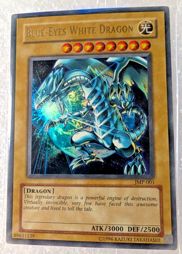 1996 Yu-Gi-Oh! SEALED “Blue-Eyes White Dragon” JMP-001 Ungraded Sealed This would be a great addition to any collection. Please check all photos for condition and feel free to e-mail me with any questions or for additional pictures. I will combine shipping charges whenever possible. If you are satisfied with your item, please leave feedback and I will do the same.