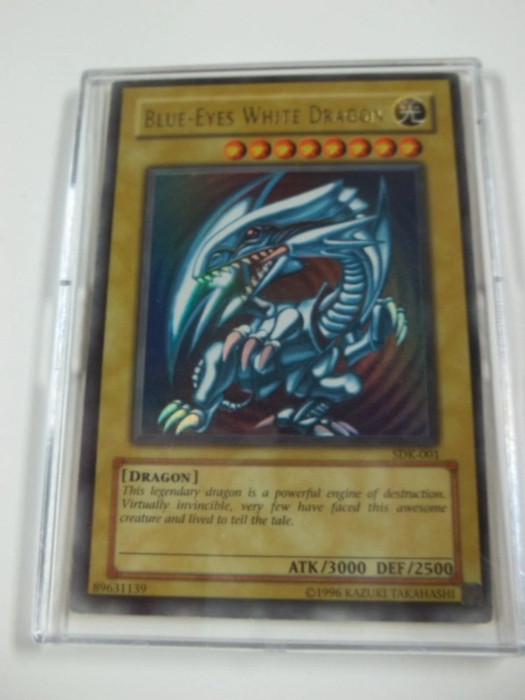Two Holo versions of Blue-Eyes White Dragon (2) 1996 Collector’s Yu-Gi-Oh! Playing Cards SKE-001 and SDK-001 You will receive both cards as pictured, each in a protective clear acrylic case