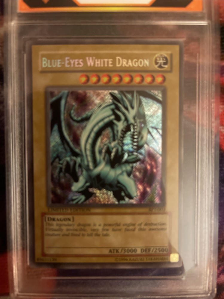 This rare and highly sought-after blue eyes white dragon card from the 1996 Limited Edition collection is an absolute must-have for any serious collector of collectible card games. The card features stunning artwork and is graded at 7.5 by a professional grader. It has a certification number of 010120230661 and is a true gem for any fan of the game. Its attributes include being blue in color and named Dragons. Don't miss out on the chance to own this incredible piece of gaming history.