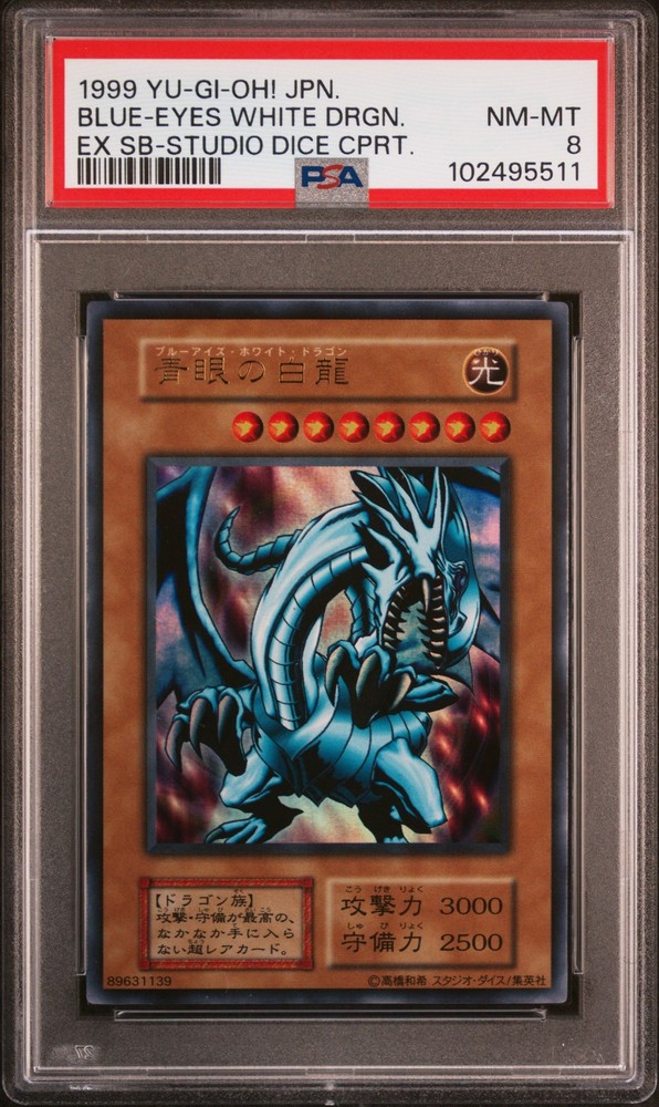 1999 YU-GI-OH! JAPANESE EX STARTER BOX STUDIO DICE COPYRIGHT BLUE-EYES WHITE DRAGON PSA 8 1999 YU-GI-OH! JAPANESE EX STARTER BOX STUDIO DICE COPYRIGHT BLUE-EYES WHITE DRAGON PSA 8 Purchase Info Thank you for your interest in this item consigned with PSA! By purchasing or making an offer on this item, you acknowledge and agree to the following terms: All sales are final. Returns not accepted. Payment must be made upon purchase of the item. All items are sold "as is" and without warranty of Collectors Universe, Inc. (d/b/a PSA), and ANY AND ALL IMPLIED WARRANTIES ARE DISCLAIMED AND EXCLUDED. Sales tax may apply depending on shipping address. PSA does not guarantee that another third-party grading company's authentication or certification of an item as genuine is correct or accurate. Neither a difference of opinion between third-party grading companies about authenticity, nor a company's subsequent reversal of its earlier authentication or certification of an item, will be a basis for rescinding a sale. Any dispute with another third-party grading company relating to the authenticity of an item must be resolved directly with that other company. Collectors' maximum liability in the event of loss or damage to an item during shipping will be the lesser of (a) the price paid for the item and (b) the change in fair market value of the item. You release Collectors from all other liability including for any claims of punitive damages, emotional distress, consequential damages, lost profits, or lost interest, except as prohibited by law. Shipping Purchased Items will be shipped directly from PSA Vault. You stay hands-free. PSA Vault When you purchase this item, you can save on sales tax and selling fees by keeping it in the PSA Vault, official Vault of eBay. Items already in PSA Vault and will be sent to PSA Vault will have no shipping charge Storage of any items with the PSA Vault will be subject to the PSA Vault Terms of Service. Consignment PSA has competitive rates on the world's largest collectibles marketplace with the option to list from the PSA Vault or immediately after PSA authentication and grading. Sale Price Under $100 $100 - $499 $500 - $999 $1,000 - $2,499 $2,500 - $4,999 $5,000+ Seller Fee 16% 14% 13% 10% 9% 7% Sellers pay a single fee as reflected above; no additional eBay fees are incurred. There is a $5 minimum fee on sold items.