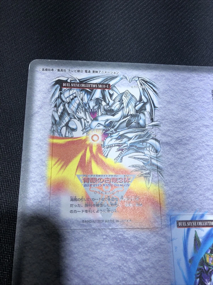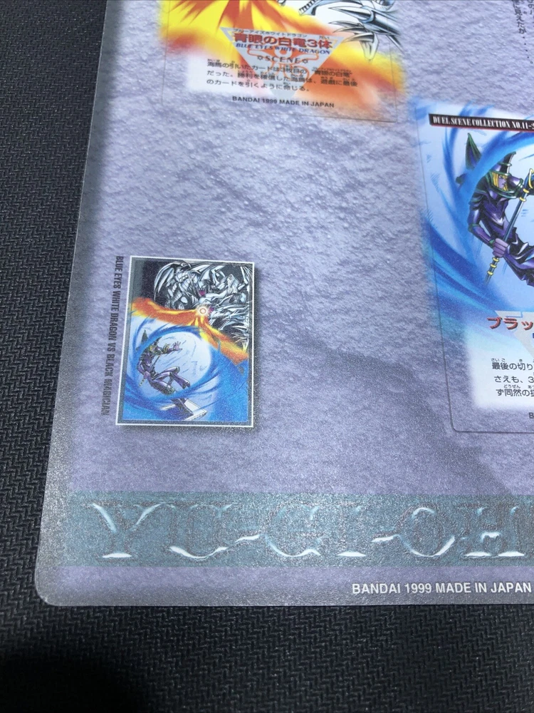 Up for auction is a rare 1999 Yu-Gi-Oh! Bandai Duel Scene Collection Blue Eyes White Dragon vs Black Magician No. 11 JUMBO CARD PLEASE LOOK AT PICTURES