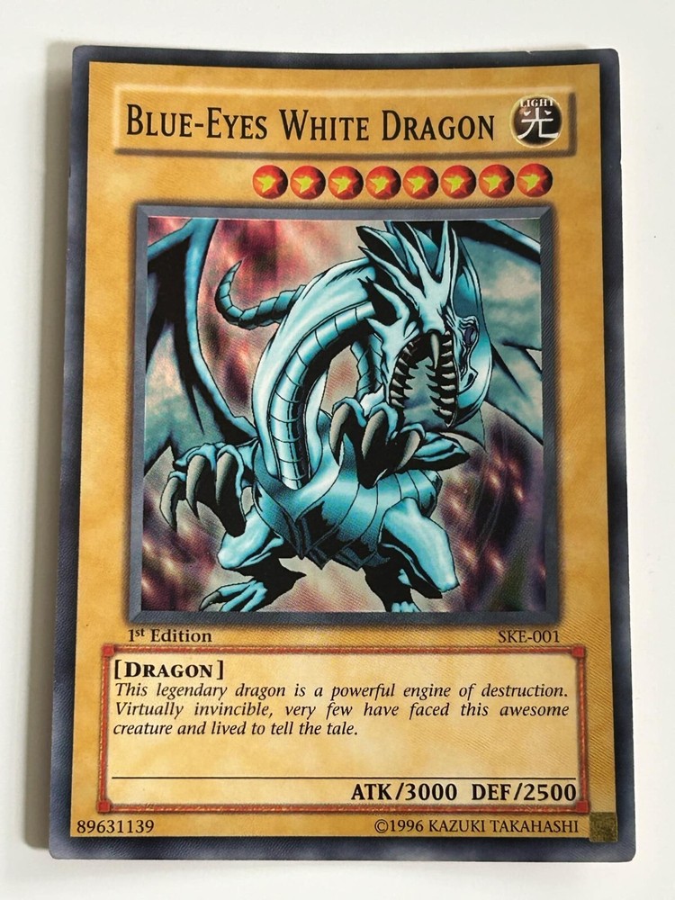 1st Edition Blue-Eyes White Dragon - SKE-001 - YuGiOh! Starter Deck: Kaiba Evolution - Super Rare - Moderately Played Card will be shipped in a penny sleeve, top loader, and team bag for added protection.