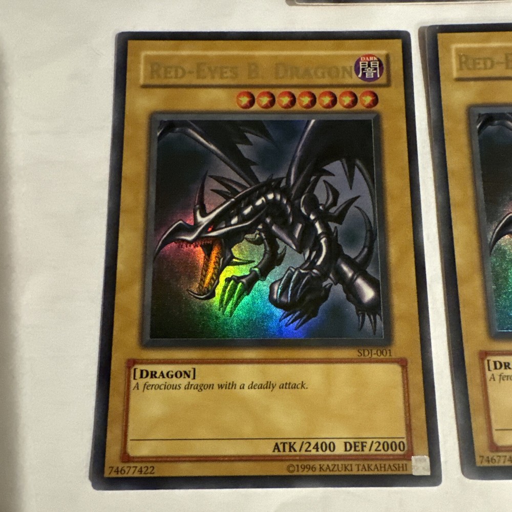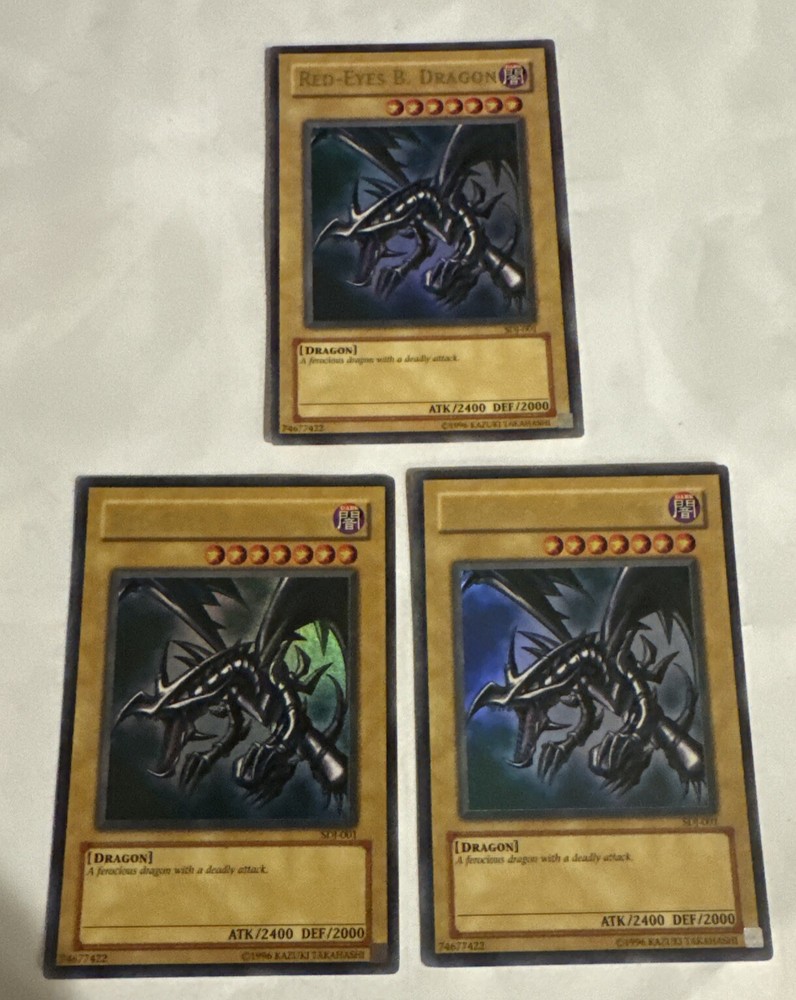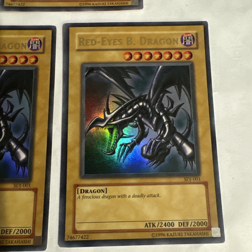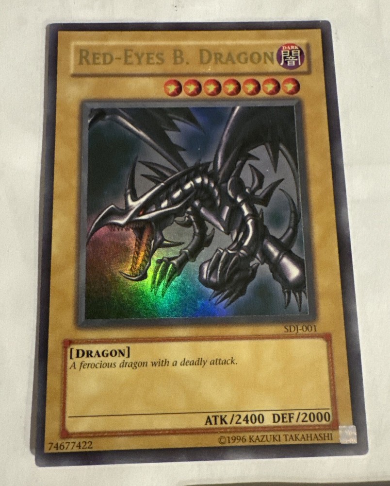 Yugioh Red-Eyes Black Dragon SDJ-001 Unlimited Holo LP. You receive ONE card per purchase. Some scuffing on back and 1 card has an indent on the back. ***I will consider REASONABLE offers. If you offer 50% off or more I will not consider that a reasonable offer, and will be less likely to consider a lower price. Please do not ask me for a best price and counter with something way lower. I do combine shipping but do not ask for a shipping discount on a single item. We calculate shipping based on weight, size, and location.