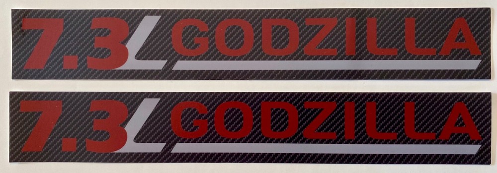This is for 2 7.3 L GODZILLA Tailgate or Door Decals for the 2020 & 2021 Ford F250 & F350 size: 10" x 1.5" Style - #TR02 *NOTE- We have other styles available Designed specifically for the 2020 & 2021 Ford F250 & F350 with the 7.3 L GODZILLA motor. The Decals are made from Automotive grade Truck Vinyl Wrap and will last for years. These Vinyl Emblems are made to be installed on the Trucks Tailgate and or the Front Doors. Installation : Application should be between 60-80 degrees in the shade If it is colder than 60 use a hair dryer to warm the surface 1. Wash the area with soap & water ...let dry. 2. Wipe the area with rubbing Alcohol ...let dry. 3. Use a 12" piece of blue painters tape to make a straight edge on the door or tailgate just under where your decal will be applied. 4. Stand back and make sure it is straight with the body lines of the Truck and where you want it. 5. Remove the back of the Decal and apply along the Straight edge of the tape. 6. Use a squeegee or Credit card wrapped in a rag to push any bubbles out of the Decal. 7. Use a hair dryer on low " Only" to seal the Decal to the surface while rubbing with a soft rage. 8. DO NOT...Get the surface hot.