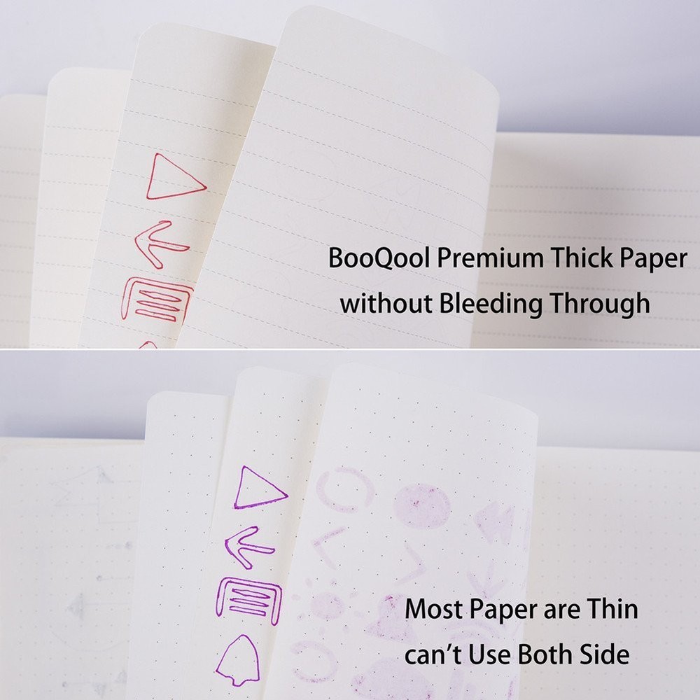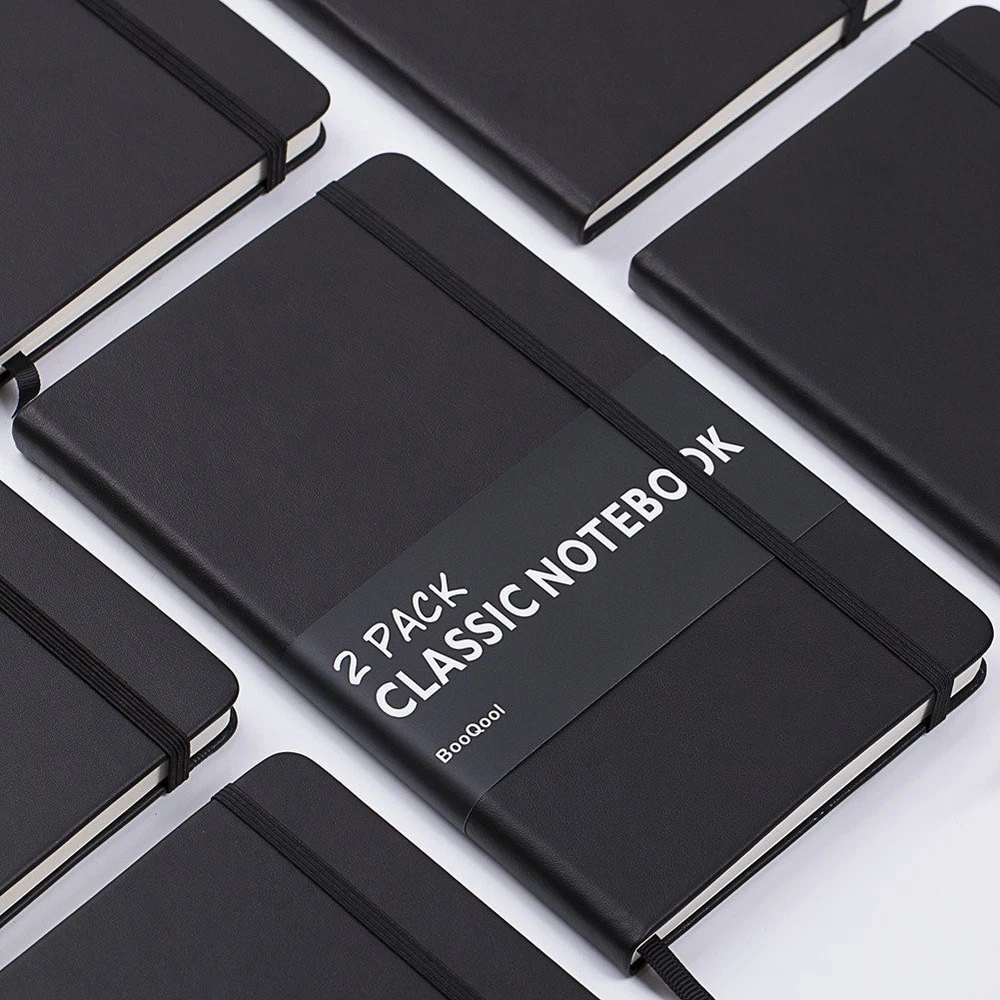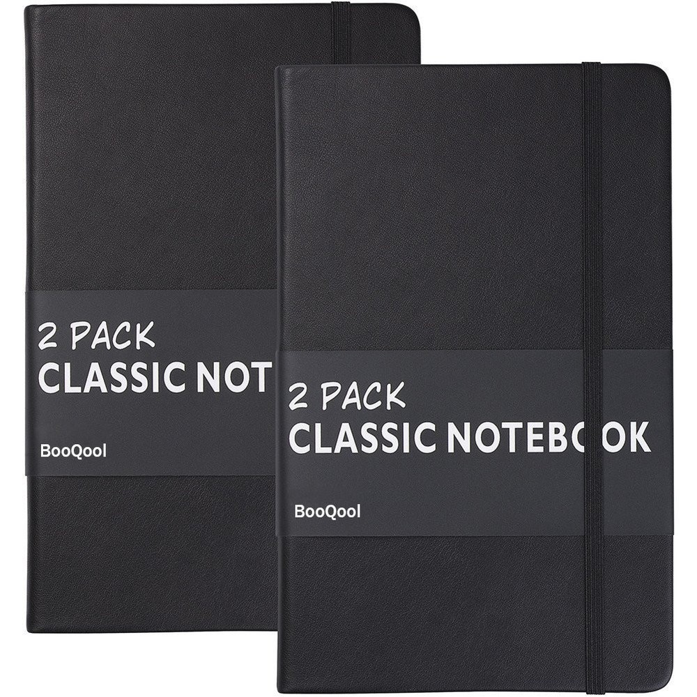 VALUE OF MONEY - 2 pack large classic ruled notebook, journals are elegant, quality crafted books available at a surprisingly COMPETITVE PRICE & QUALITY. A huge choice for everyday use, provides plenty of space for notes, lists, musings, and more. PREMIUM THICK PAPER - 128 pages (for each) lined paper, thicker 30% than normal, the paper of this notebook is ink-proof and is designed to avoid feathering, suit for most pens, but the wettest pen inks. Archival-quality pages made from acid-free paper-resists damage from light and air, the cream paper is easy on eyes. FAUX LEATHER - Texture finish of the faux leather exterior feels great in your hand, just like a baby's skin. Fashion but durable cover adapts to the movements of body without damage. The notebook's hard cover protects the pages inside and doubles as a convenient writing surface. Great GIFT for any VEGAN. HUMANIZED DESIGN - Integrated Bookmark & Expandable Inner Pocket & Cardboard Bound Cover,elastic closure helps keep notebook securely closed, making it easy to write in the notebook from just about anywhere. This notebook provide you a high quality writing experience. GREAT USE - Ideal for all office, school and home use including for taking notes and keeping work in order, as a diary or journal for brainstorming ideas, creative writing or just doodling and drawing to your hearts content.