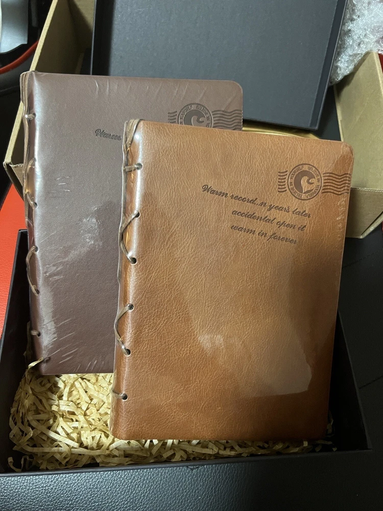 2 Set Leather Bound Journals Leather Journal Valentine Gifts. Features: Ideal and practical gift: The pen and journal gift set are not only suitable for graduates, but also for business executives, journalists, artisans, writers, or adventure lovers. They will use the set often. Cultivate writing: The leather journals for writing and feather pens are designed delicately, which may encourage you to write and record more. With time going, you may love writing and develop a good habit. Specifications: Main material: paper Color: Vintage journals: light coffee, coffee Size: Paper box: about 21 x 15 x 6 cm/ 8.27 x 5.91 x 2.36 inches Paper bag: about 26 x 18 x 7 cm/ 10.24 x 7.09 x 2.76 inches Package includes: 2 x Vintage journals 2 x Feather pens 1 x Paper box with raffia 1 x Paper bag
