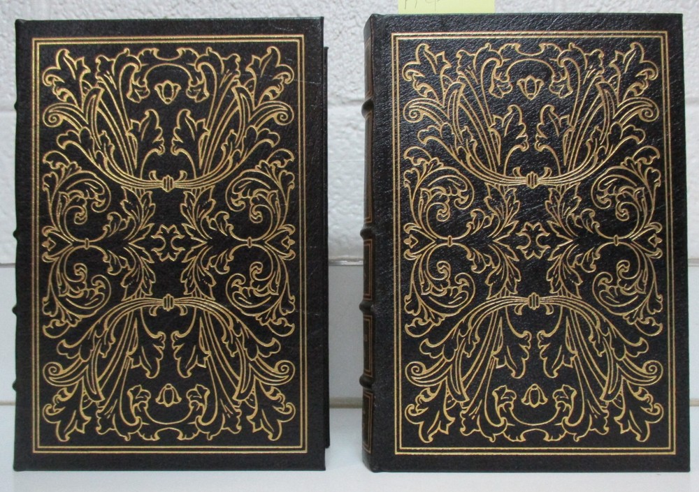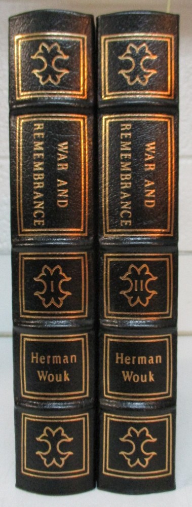 2 Volume Set: War and Remembrance by Herman Wouk; Easton Press, Leather War and Remembrance by Herman Wouk, illustrated by Alan Phillips Easton Press Complete in 2 volumes Both volumes come with the usual Easton Press perks, including: gilt-embossed full-leather covers, gilt page edges, silk endpapers, and silk bookmarks. Hardcovers in Excellent Condition: No loose or missing pages, no water damage. No highlighting or underlining. Blind stamps on title pages. Great collectible copies. 1042 pages total, 1992, 9.5x6.5" k-ep-392 black 5# Whse