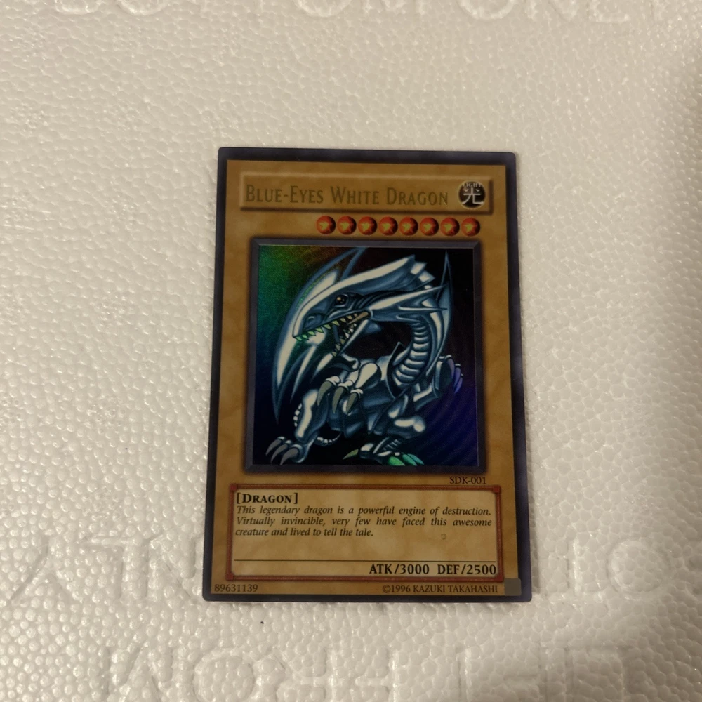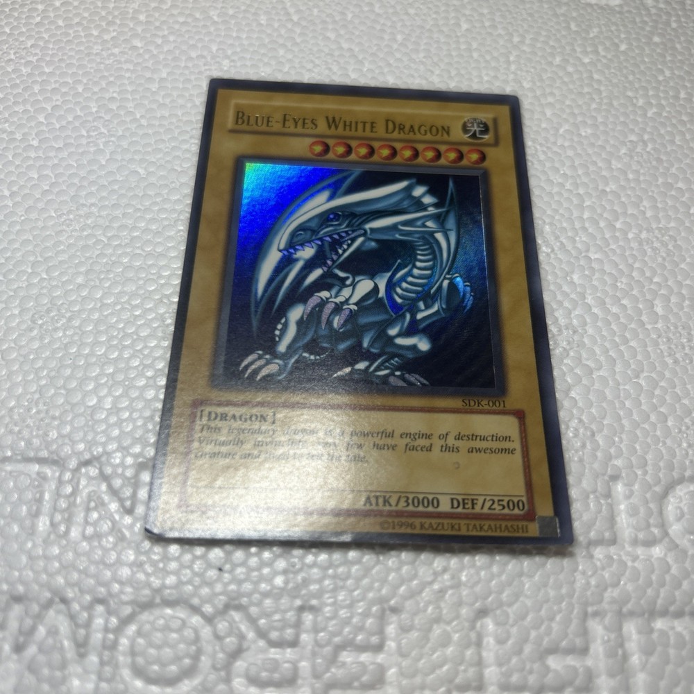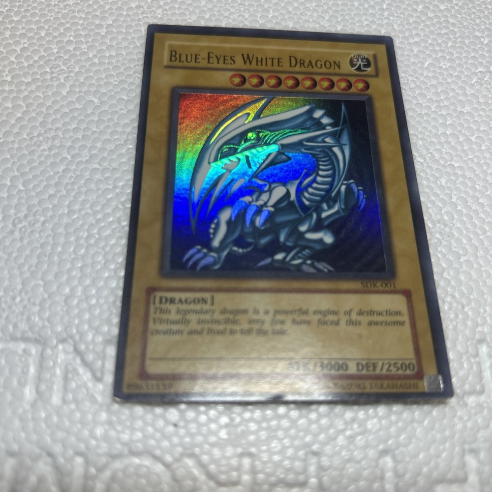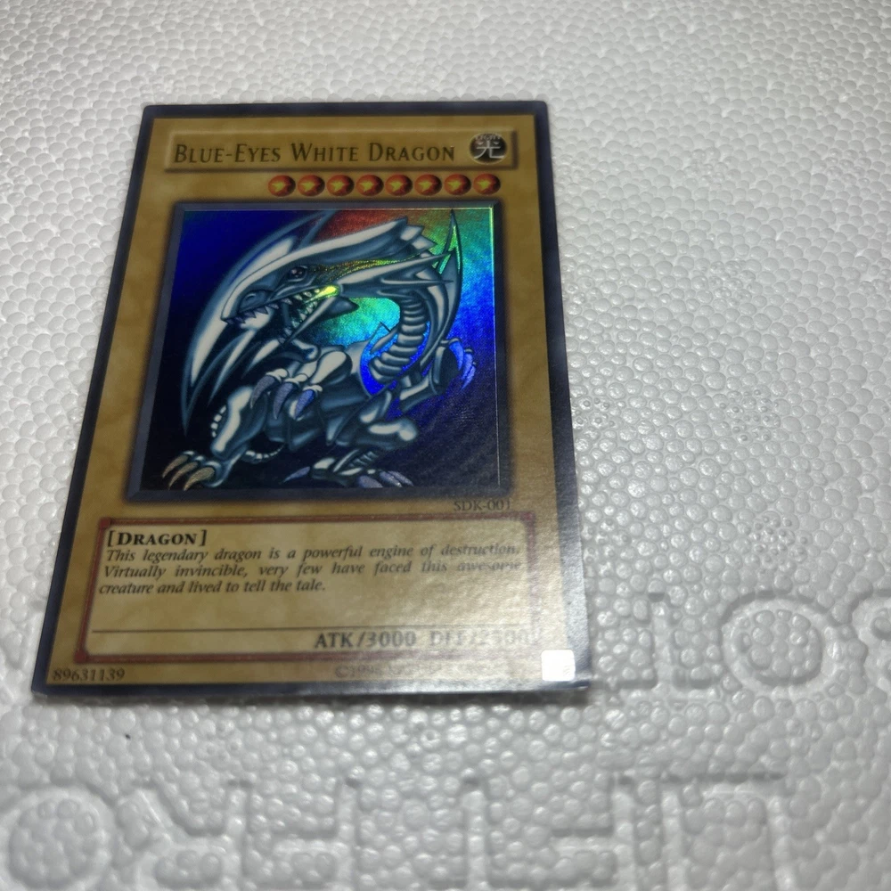 The 2002 SDK 001 Blue-Eyes White Dragon Ultra Rare Yu-Gi-Oh! card is a highly sought-after collectible from the Yu-Gi-Oh! TCG World Championship. This English language card features the iconic Blue-Eyes White Dragon character with a holo finish, making it a prized possession for collectors and fans of the franchise. With a high attack power of 3000 and defense of 2500, this vintage card from 2002 is a valuable addition to any card collection. Not mint! But overall good condition: lower base has some wear as shown in pics Non smoking home No returns on items Will ship with USPS secure Thanks for looking