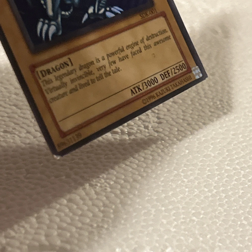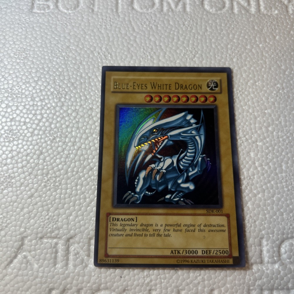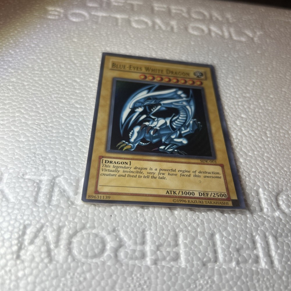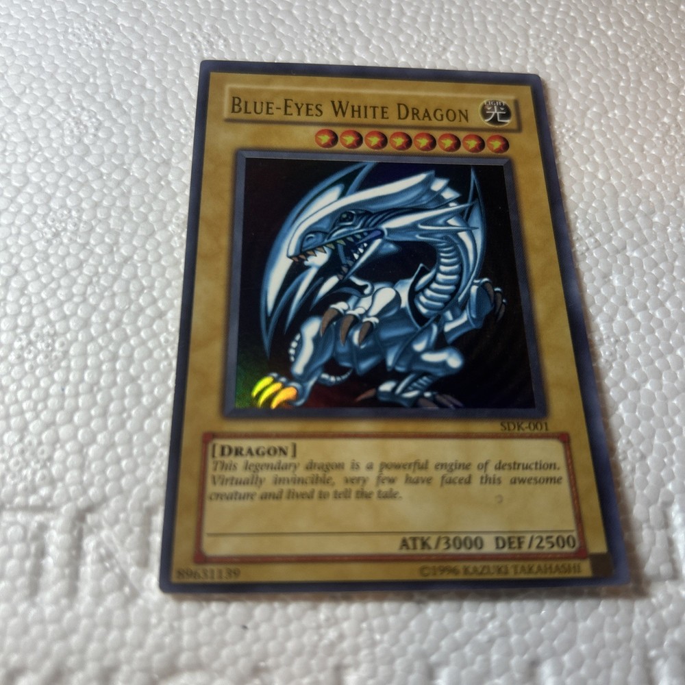 The 2002 SDK 001 Blue-Eyes White Dragon Ultra Rare Yu-Gi-Oh! card is a highly sought-after collectible from the Yu-Gi-Oh! TCG World Championship. This English language card features the iconic Blue-Eyes White Dragon character with a holo finish, making it a prized possession for collectors and fans of the franchise. With a high attack power of 3000 and defense of 2500, this vintage card from 2002 is a valuable addition to any card collection. Not mint! But overall good condition: lower base has some wear as shown in pics Non smoking home No returns on items Will ship with USPS secure Thanks for looking