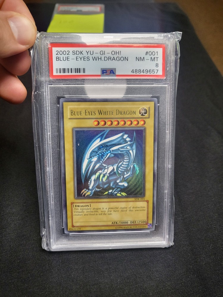 2002 SDK YU-GI-OH! BLUE EYES WHITE DRAGON #001 PSA 8. Condition is Graded. Shipped with USPS Ground Advantage....