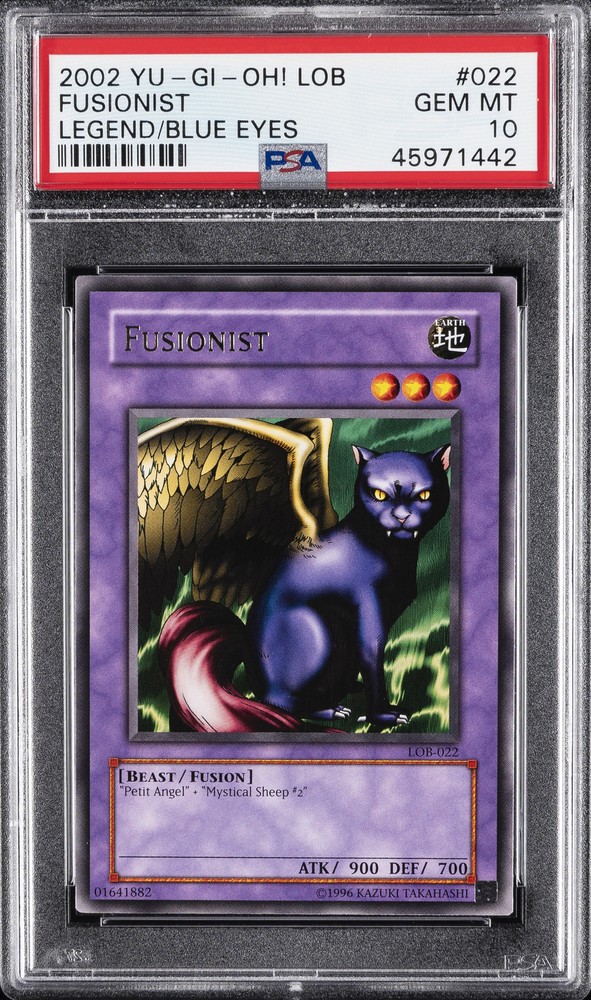 2002 YU-GI-OH! LOB-LEGEND OF BLUE EYES WHITE DRAGON #022 FUSIONIST PSA 10 2002 YU-GI-OH! LOB-LEGEND OF BLUE EYES WHITE DRAGON #022 FUSIONIST PSA 10 Purchase Info Thank you for your interest in this item consigned with PSA! By purchasing or making an offer on this item, you acknowledge and agree to the following terms: All sales are final. Returns not accepted. Payment must be made upon purchase of the item. All items are sold "as is" and without warranty of Collectors Universe, Inc. (d/b/a PSA), and ANY AND ALL IMPLIED WARRANTIES ARE DISCLAIMED AND EXCLUDED. Sales tax may apply depending on shipping address. PSA does not guarantee that another third-party grading company's authentication or certification of an item as genuine is correct or accurate. Neither a difference of opinion between third-party grading companies about authenticity, nor a company's subsequent reversal of its earlier authentication or certification of an item, will be a basis for rescinding a sale. Any dispute with another third-party grading company relating to the authenticity of an item must be resolved directly with that other company. Collectors' maximum liability in the event of loss or damage to an item during shipping will be the lesser of (a) the price paid for the item and (b) the change in fair market value of the item. You release Collectors from all other liability including for any claims of punitive damages, emotional distress, consequential damages, lost profits, or lost interest, except as prohibited by law. Shipping Purchased Items will be shipped directly from PSA Vault. You stay hands-free. PSA Vault When you purchase this item, you can save on sales tax and selling fees by keeping it in the PSA Vault, official Vault of eBay. Items already in PSA Vault and will be sent to PSA Vault will have no shipping charge Storage of any items with the PSA Vault will be subject to the PSA Vault Terms of Service. Consignment PSA has competitive rates on the world's largest collectibles marketplace with the option to list from the PSA Vault or immediately after PSA authentication and grading. Sale Price Under $100 $100 - $499 $500 - $999 $1,000 - $2,499 $2,500 - $4,999 $5,000+ Seller Fee 16% 14% 13% 10% 9% 7% Sellers pay a single fee as reflected above; no additional eBay fees are incurred. There is a $5 minimum fee on sold items.