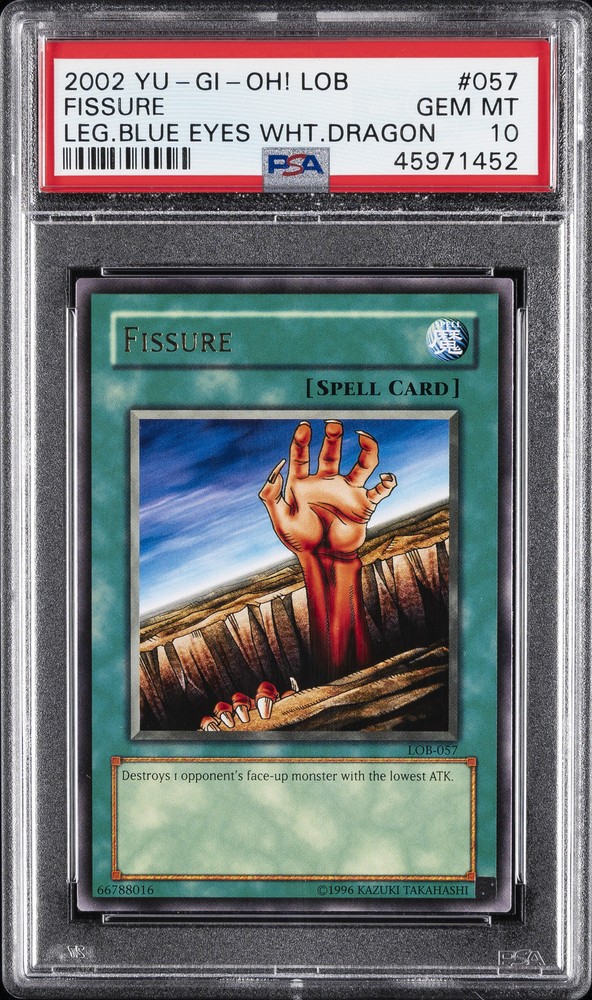 2002 YU-GI-OH! LOB-LEGEND OF BLUE EYES WHITE DRAGON #057 FISSURE PSA 10 2002 YU-GI-OH! LOB-LEGEND OF BLUE EYES WHITE DRAGON #057 FISSURE PSA 10 Purchase Info Thank you for your interest in this item consigned with PSA! By purchasing or making an offer on this item, you acknowledge and agree to the following terms: All sales are final. Returns not accepted. Payment must be made upon purchase of the item. All items are sold "as is" and without warranty of Collectors Universe, Inc. (d/b/a PSA), and ANY AND ALL IMPLIED WARRANTIES ARE DISCLAIMED AND EXCLUDED. Sales tax may apply depending on shipping address. PSA does not guarantee that another third-party grading company's authentication or certification of an item as genuine is correct or accurate. Neither a difference of opinion between third-party grading companies about authenticity, nor a company's subsequent reversal of its earlier authentication or certification of an item, will be a basis for rescinding a sale. Any dispute with another third-party grading company relating to the authenticity of an item must be resolved directly with that other company. Collectors' maximum liability in the event of loss or damage to an item during shipping will be the lesser of (a) the price paid for the item and (b) the change in fair market value of the item. You release Collectors from all other liability including for any claims of punitive damages, emotional distress, consequential damages, lost profits, or lost interest, except as prohibited by law. Shipping Purchased Items will be shipped directly from PSA Vault. You stay hands-free. PSA Vault When you purchase this item, you can save on sales tax and selling fees by keeping it in the PSA Vault, official Vault of eBay. Items already in PSA Vault and will be sent to PSA Vault will have no shipping charge Storage of any items with the PSA Vault will be subject to the PSA Vault Terms of Service. Consignment PSA has competitive rates on the world's largest collectibles marketplace with the option to list from the PSA Vault or immediately after PSA authentication and grading. Sale Price Under $100 $100 - $499 $500 - $999 $1,000 - $2,499 $2,500 - $4,999 $5,000+ Seller Fee 16% 14% 13% 10% 9% 7% Sellers pay a single fee as reflected above; no additional eBay fees are incurred. There is a $5 minimum fee on sold items.