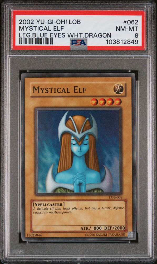 2002 YU-GI-OH! LOB-LEGEND OF BLUE EYES WHITE DRAGON #062 MYSTICAL ELF PSA 8 2002 YU-GI-OH! LOB-LEGEND OF BLUE EYES WHITE DRAGON #062 MYSTICAL ELF PSA 8 Purchase Info Thank you for your interest in this item consigned with PSA! By purchasing or making an offer on this item, you acknowledge and agree to the following terms: All sales are final. Returns not accepted. Payment must be made upon purchase of the item. All items are sold "as is" and without warranty of Collectors Universe, Inc. (d/b/a PSA), and ANY AND ALL IMPLIED WARRANTIES ARE DISCLAIMED AND EXCLUDED. Sales tax may apply depending on shipping address. PSA does not guarantee that another third-party grading company's authentication or certification of an item as genuine is correct or accurate. Neither a difference of opinion between third-party grading companies about authenticity, nor a company's subsequent reversal of its earlier authentication or certification of an item, will be a basis for rescinding a sale. Any dispute with another third-party grading company relating to the authenticity of an item must be resolved directly with that other company. Collectors' maximum liability in the event of loss or damage to an item during shipping will be the lesser of (a) the price paid for the item and (b) the change in fair market value of the item. You release Collectors from all other liability including for any claims of punitive damages, emotional distress, consequential damages, lost profits, or lost interest, except as prohibited by law. Shipping Purchased Items will be shipped directly from PSA Vault. You stay hands-free. PSA Vault When you purchase this item, you can save on sales tax and selling fees by keeping it in the PSA Vault, official Vault of eBay. Items already in PSA Vault and will be sent to PSA Vault will have no shipping charge Storage of any items with the PSA Vault will be subject to the PSA Vault Terms of Service. Consignment PSA has competitive rates on the world's largest collectibles marketplace with the option to list from the PSA Vault or immediately after PSA authentication and grading. Sale Price Under $100 $100 - $499 $500 - $999 $1,000 - $2,499 $2,500 - $4,999 $5,000+ Seller Fee 16% 14% 13% 10% 9% 7% Sellers pay a single fee as reflected above; no additional eBay fees are incurred. There is a $5 minimum fee on sold items.