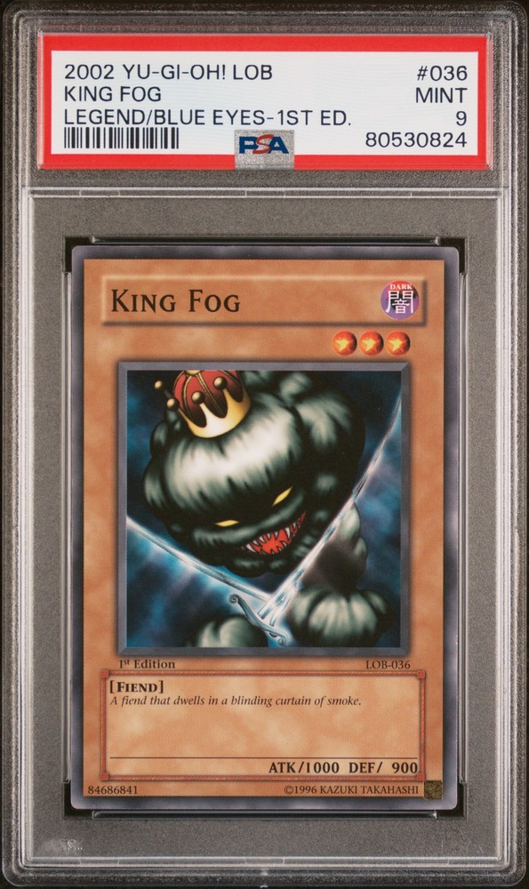 2002 YU-GI-OH! LOB-LEGEND OF BLUE EYES WHITE DRAGON 1ST EDITION #036 KING FOG PSA 9 2002 YU-GI-OH! LOB-LEGEND OF BLUE EYES WHITE DRAGON 1ST EDITION #036 KING FOG PSA 9 Purchase Info Thank you for your interest in this item consigned with PSA! By purchasing or making an offer on this item, you acknowledge and agree to the following terms: All sales are final. Returns not accepted. Payment must be made upon purchase of the item. All items are sold "as is" and without warranty of Collectors Universe, Inc. (d/b/a PSA), and ANY AND ALL IMPLIED WARRANTIES ARE DISCLAIMED AND EXCLUDED. Sales tax may apply depending on shipping address. PSA does not guarantee that another third-party grading company's authentication or certification of an item as genuine is correct or accurate. Neither a difference of opinion between third-party grading companies about authenticity, nor a company's subsequent reversal of its earlier authentication or certification of an item, will be a basis for rescinding a sale. Any dispute with another third-party grading company relating to the authenticity of an item must be resolved directly with that other company. Collectors' maximum liability in the event of loss or damage to an item during shipping will be the lesser of (a) the price paid for the item and (b) the change in fair market value of the item. You release Collectors from all other liability including for any claims of punitive damages, emotional distress, consequential damages, lost profits, or lost interest, except as prohibited by law. Shipping Purchased Items will be shipped directly from PSA Vault. You stay hands-free. PSA Vault When you purchase this item, you can save on sales tax and selling fees by keeping it in the PSA Vault, official Vault of eBay. Items already in PSA Vault and will be sent to PSA Vault will have no shipping charge Storage of any items with the PSA Vault will be subject to the PSA Vault Terms of Service. Consignment PSA has competitive rates on the world's largest collectibles marketplace with the option to list from the PSA Vault or immediately after PSA authentication and grading. Sale Price Under $100 $100 - $499 $500 - $999 $1,000 - $2,499 $2,500 - $4,999 $5,000+ Seller Fee 16% 14% 13% 10% 9% 7% Sellers pay a single fee as reflected above; no additional eBay fees are incurred. There is a $5 minimum fee on sold items.