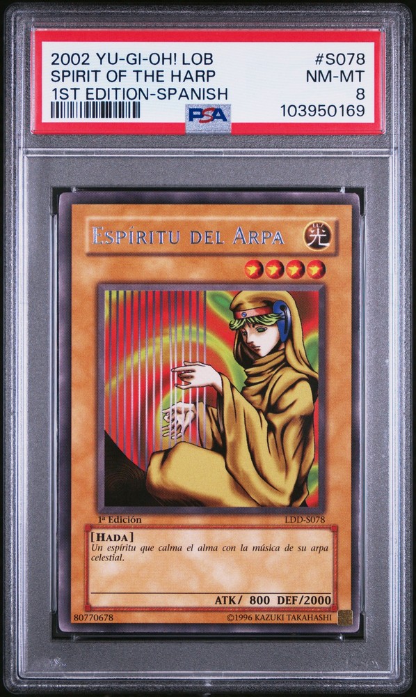 2002 YU-GI-OH! LOB-LEGEND OF BLUE EYES WHITE DRAGON 1ST EDITION-SPANISH #S078 SPIRIT OF THE HARP PSA 8 2002 YU-GI-OH! LOB-LEGEND OF BLUE EYES WHITE DRAGON 1ST EDITION-SPANISH #S078 SPIRIT OF THE HARP PSA 8 Purchase Info Thank you for your interest in this item consigned with PSA! By purchasing or making an offer on this item, you acknowledge and agree to the following terms: All sales are final. Returns not accepted. Payment must be made upon purchase of the item. All items are sold "as is" and without warranty of Collectors Universe, Inc. (d/b/a PSA), and ANY AND ALL IMPLIED WARRANTIES ARE DISCLAIMED AND EXCLUDED. Sales tax may apply depending on shipping address. PSA does not guarantee that another third-party grading company's authentication or certification of an item as genuine is correct or accurate. Neither a difference of opinion between third-party grading companies about authenticity, nor a company's subsequent reversal of its earlier authentication or certification of an item, will be a basis for rescinding a sale. Any dispute with another third-party grading company relating to the authenticity of an item must be resolved directly with that other company. Collectors' maximum liability in the event of loss or damage to an item during shipping will be the lesser of (a) the price paid for the item and (b) the change in fair market value of the item. You release Collectors from all other liability including for any claims of punitive damages, emotional distress, consequential damages, lost profits, or lost interest, except as prohibited by law. Shipping Purchased Items will be shipped directly from PSA Vault. You stay hands-free. PSA Vault When you purchase this item, you can save on sales tax and selling fees by keeping it in the PSA Vault, official Vault of eBay. Items already in PSA Vault and will be sent to PSA Vault will have no shipping charge Storage of any items with the PSA Vault will be subject to the PSA Vault Terms of Service. Consignment PSA has competitive rates on the world's largest collectibles marketplace with the option to list from the PSA Vault or immediately after PSA authentication and grading. Sale Price Under $100 $100 - $499 $500 - $999 $1,000 - $2,499 $2,500 - $4,999 $5,000+ Seller Fee 16% 14% 13% 10% 9% 7% Sellers pay a single fee as reflected above; no additional eBay fees are incurred. There is a $5 minimum fee on sold items.