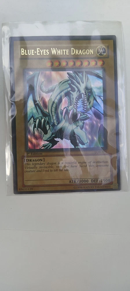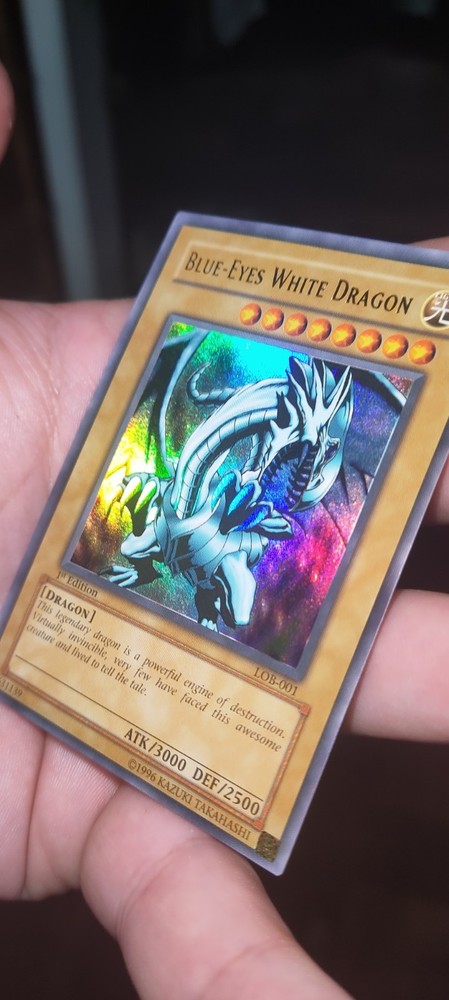 The 2002 Yu-Gi-Oh First Edition Blue Eyes White Dragon, Red Eyes, Dark Magician cards are highly coveted by collectors in the Yu-Gi-Oh TCG community. These ultra rare cards feature the character Seto Kaiba and have impressive stats like 3000 attack power and 2500 defense. The cards are in near mint or better condition and have a holo finish, adding to their allure as vintage pieces from the game's early days. With the prestigious 1st Edition label, these cards represent a valuable addition to any Yu-Gi-Oh card collection. The sale are for these 3 cards, first edition blue eyes white dragon, red eyes black dragon, and dark magician. They have never been played before and have been sealed in a binder and card savers for the last 20 years plus. they are in near mint condition. never played or used.