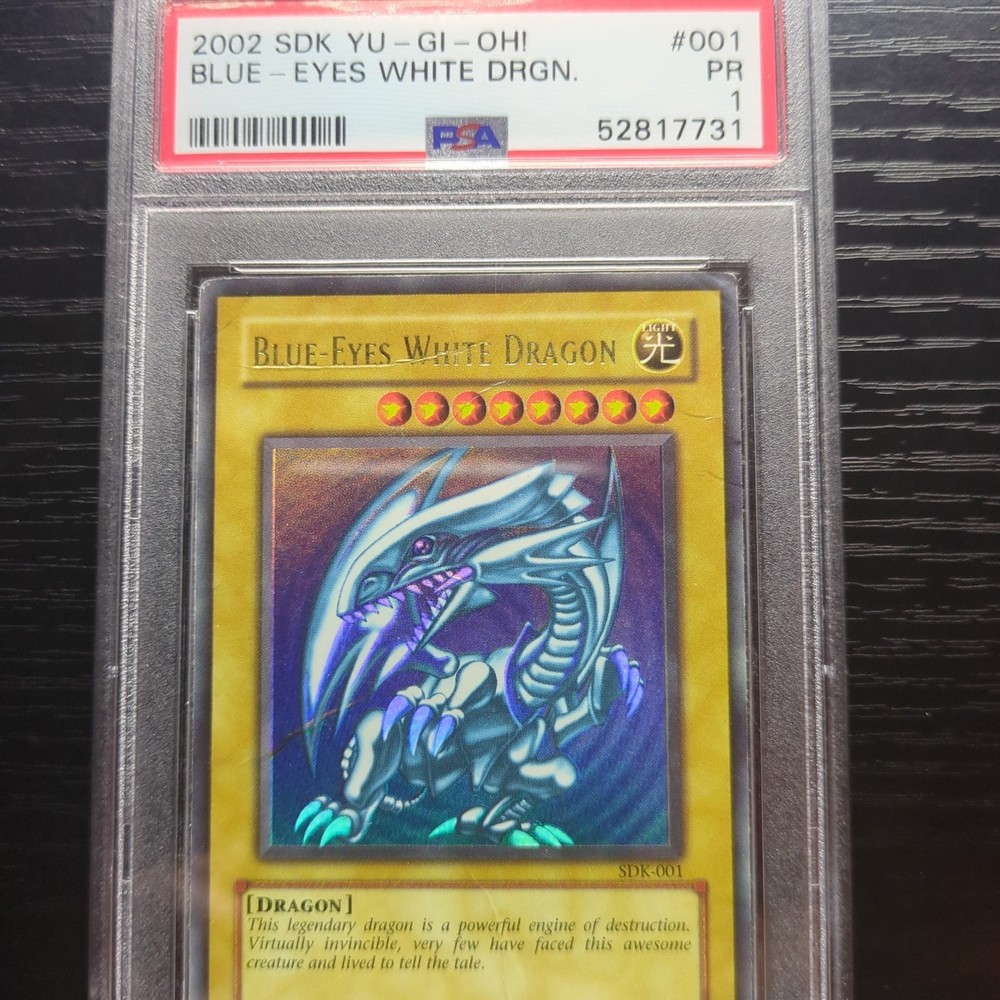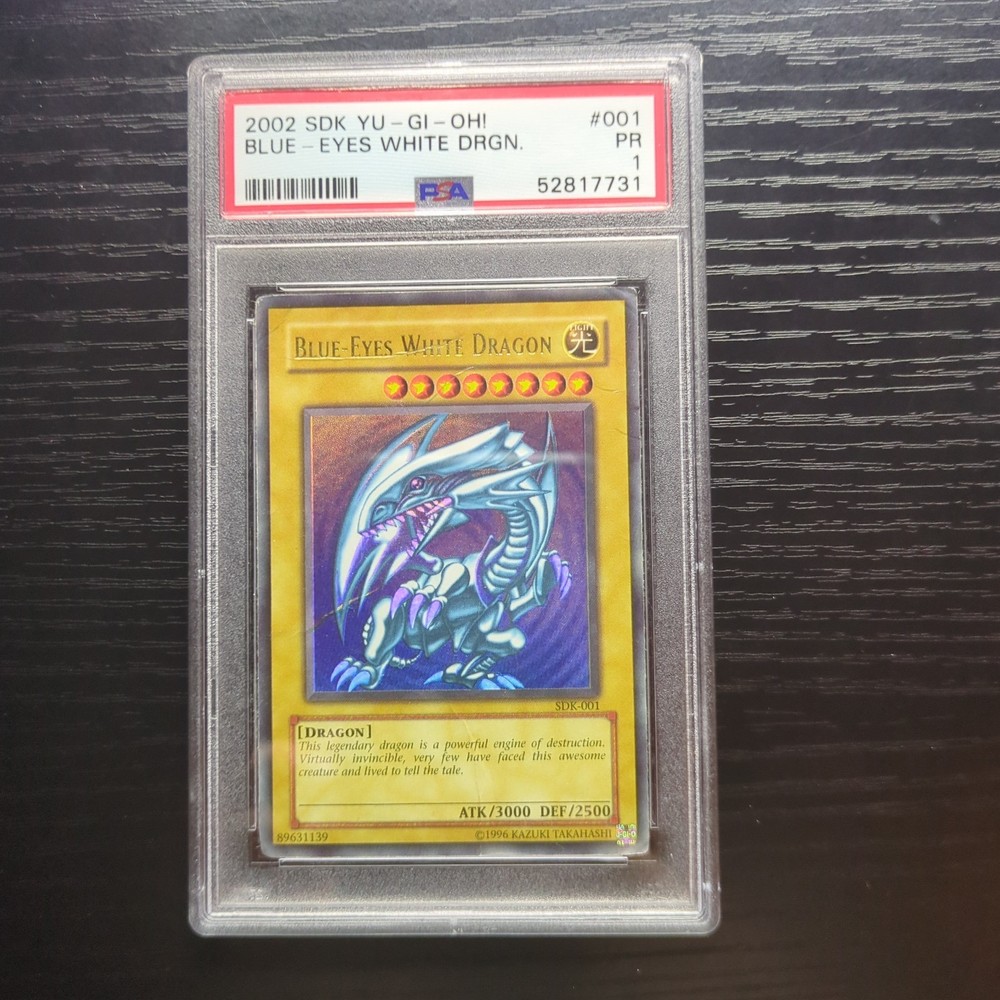 This is a graded copy of the iconic Blue-Eyes White Dragon card from the 2002 Yu-Gi-Oh! Starter Deck Kaiba (SDK)