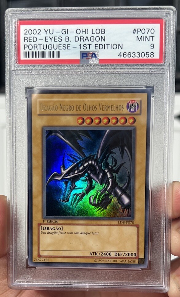 2002 Yu-Gi-Oh LOB-070, LDB-P070 Red-Eyes B. Dragon 1st Ed PSA MINT 9 Portuguese. Condition is Graded. Shipped with USPS Ground Advantage.