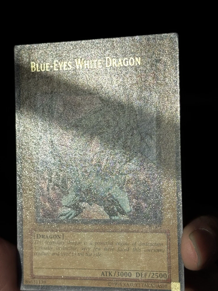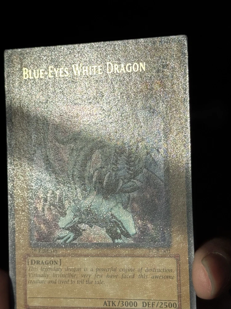 The product is a 2002 Yu-Gi-Oh! Legend of Blue Eyes White Dragon 1st Edition card featuring the iconic Blue Eyes White Dragon character. Manufactured by Konami, this Ultra Rare card is a Monster type with a Holo finish, making it a highly sought-after collectible for fans of the Yu-Gi-Oh! TCG. With its special LEGEND attribute and being part of the Legend of Blue Eyes White Dragon set, this card is a valuable addition to any collector's deck.