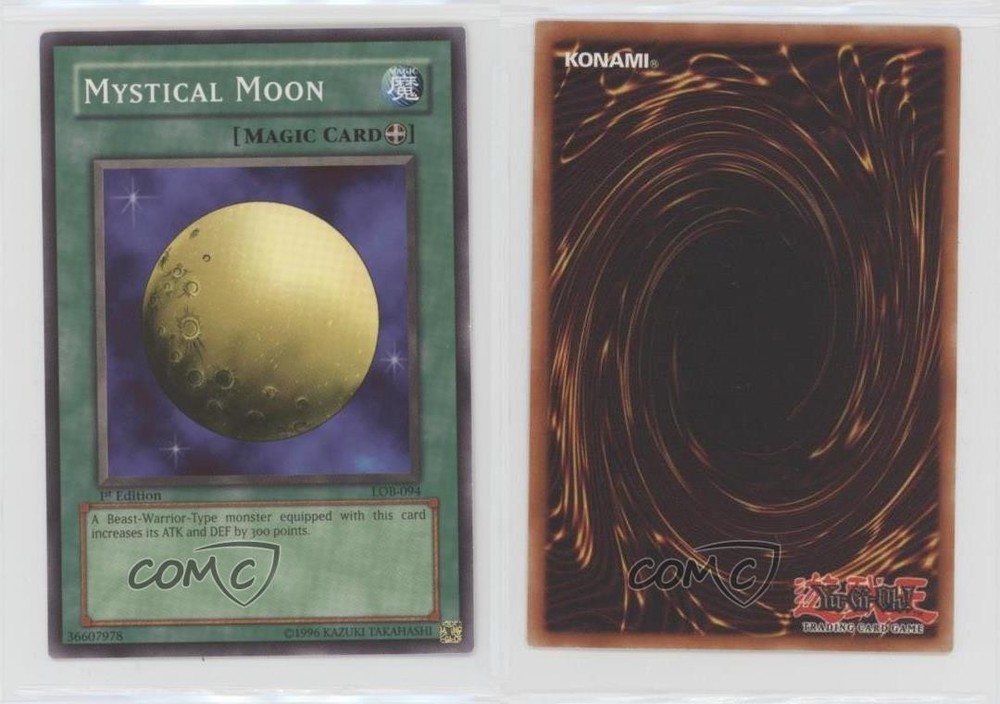 2002 Yu-Gi-Oh! Legend of Blue Eyes White Dragon - [Base] - 1st Edition #LOB-094 Mystical Moon COMC Item: 101555469 - YuGiOh Card - Featuring Mystical Moon Search for more: 2002 Yu-Gi-Oh! Legend of Blue Eyes White Dragon Search for more: 2002 Yu-Gi-Oh! Legend of Blue Eyes White Dragon - [Base] - 1st Edition View all of our Listings Auctions Buy It Now About Us Located in the beautiful Pacific Northwest, COMC (Check Out My Cards) is the world's largest consignment service for trading card singles. More than 10,000 people have used our consignment service to list over 50 million trading cards. Find out how we can help you consign your items on eBay by contacting us through eBay messaging. COMC -- "The Safe & Easy Way to Buy & Sell" Raw Condition for Modern Cards Unless otherwise noted, raw modern cards are listed in Near Mint-Mint condition or better. A NM-MT card appears to be Mint at first glance, but upon closer inspection, may exhibit some of the following: minor print defects (e.g. roller marks, print line, dimple), minor scratches, slight edge wear, and slight corner wear. Centering is clearly visible in the images provided and does not factor into our condition assessment. Raw Condition for Vintage Cards Unless otherwise noted, raw vintage cards are listed in Excellent condition or better. An EX card may exhibit some of the following: minor rounding of corners, surface wear, print defects, light scratches, and slight edge wear/chipping. Centering is clearly visible in the images provided and does not factor into our condition assessment. Domestic Shipping Combined shipping for multiple items is available. To receive combined shipping, please ensure all desired items are in your eBay shopping cart before proceeding to checkout. eBay limits orders to 40 items per order. We automatically combine multiple orders placed on the same day. If you place multiple orders on the same day, please contact us to request a refund of applicable shipping costs. Signature confirmation may be required on invoices over $400. All cards are protected and shipped securely. International Shipping COMC offers eBay's International Shipping (EIS) for international orders under $2,500* (see country exceptions below). All duties and import fees are paid at checkout; in the rare event that there are additional import fees upon delivery, these are borne by the buyer. EIS packages route through a shipping hub in Erlanger, KY before shipping to their final destination. Please note that EIS does not allow for combined shipments. The shipping rates are determined by eBay and cannot be adjusted. *Maximum sale price exceptions: Colombia, Kuwait ($2,000); Taiwan ($1,539); Chile, Costa Rica, Guatemala, Honduras, Trinidad and Tobago ($1,000); Antigua and Barbuda, Aruba, Belize, Dominica, Grenada, Philippines, Saint Kitts and Nevis, Saint Lucia, Montserrat, Turks and Caicos Islands ($500); Dominican Republic, El Salvador ($200). Please request a shipping quote through eBay messaging for orders that exceed the maximum sale price supported by eBay's International Shipping. You will be responsible for all duties and import fees for international orders shipped outside the EIS. All cards are protected and shipped securely. Payment COMC does not accept offers on our cards through our eBay storefront. COMC utilizes eBay’s managed payments system. If you are experiencing difficulties making a payment, please contact eBay for assistance. Return Policy Returns are only accepted on the rare occasion the item is not as described. If you are making a return, please initiate the return process through eBay so a mailing label can be provided for you. Prior to listing, our expert team carefully assessed this item to represent it accurately. Please review the description and high-definition images prior to purchasing to ensure this item meets your satisfaction. We welcome you to contact us if you have further questions about this item. Trust and Integrity COMC carefully assesses each item consigned to us to prevent fraudulent items from entering the marketplace. If you believe an item offered on COMC may be fraudulent, please contact us with details so we can investigate the issue. Items we determine are outside our supported items policy may be removed. Last Modified: 5/23/2025 6:03:25 AM PDT