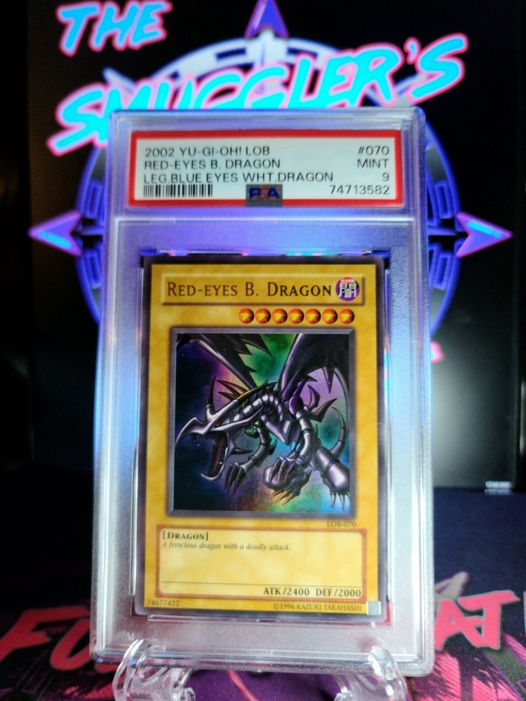 2002 YU-GI-OH! RED EYES BLACK DRAGON LOB-070 PSA 9 MINT Card Info 2002 Yu-Gi-Oh! Red Eyes Black Dragon LOB-070 Ultra Rare PSA 9 MINT. Shipping NOTICE!!! I ONLY SHIP TO EBAY AUTHENTICATED ADDRESSES. Please do not ask me to change the shipping address or I will cancel the transaction. ----------------------------------------------------------------- 99% of all my items ship via USPS. I also use UPS/FedEx as alternatives when USPS cannot cover insured value. All orders typically ship within 3 business days, sometimes sooner. Contact Please feel free to contact me with any questions and/or concerns prior to purchase. Should there be any issues with your shipment upon receipt, please contact me right away. Email responses are usually same day unless received in the evenings (Pacific Time) or on weekends 2002 Yu-Gi-Oh! Red Eyes Black Dragon LOB-070 Ultra Rare PSA 9 MINT The slab wil be secured in bubble wrap and placed into a box with ample padding to ensure you receive your card without any issues. CLICK HERE to check my store for more listings of ungraded or PSA/CGC graded loose non-sports cards, comics, as well as toys, collectibles, and more! Links & Other Information: eBay Store: https://www.ebay.com/str/thesmugglersoutpost General Contact: Click HERE Package Includes: Products purchased from this listing packed and secured as described in the shipping description at the top.