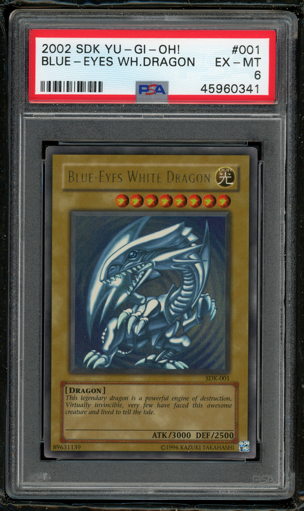 Hi, up for sale is a freshly slabbed, 2002 Yu-Gi-Oh! SDK-001 Blue-Eyes White Dragon -Ultra Rare . The card has been professionally graded by PSA Excellent-Mint 6! This is a rare card in any grade as there are only 2920 finer. This is a 763 population! Perfect for any fan of the Anime, TCG, Duelist Kingdom/Battle City arc of the series, Seto Kaiba, Forbidden Memories, or the Golden Era of Yu-Gi-Oh. A true trophy piece, from the original Starter Decks and quite possibly, the most iconic monster, and art, in all of Yu-Gi-Oh. Also, can fit nicely into any display case. A great way to start your PSA Yu-Gi-Oh!/Blue-Eyes White Dragon Collection or just simply, add to it. Serious Best Offers will be entertained. However, if you do use this feature, payment is due promptly! I list a 3 day handling time for the item, but usually ship the same day whenever I can. Plus, your item will be shipped in a box and fully protected. Good luck and don't let this one slip through your fingers. To see all of my items listed, simply go into my seller page, and filter by "newly listed or ending soonest". Thanks again.