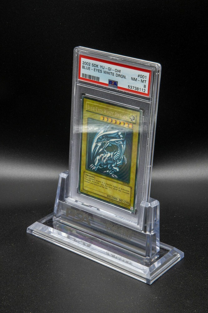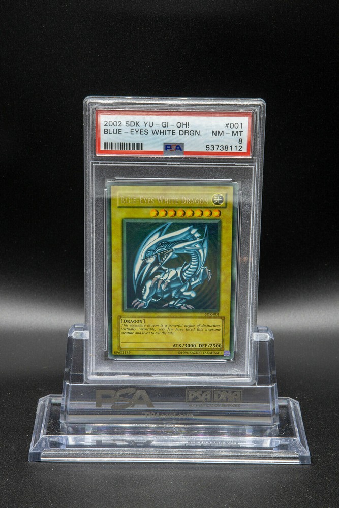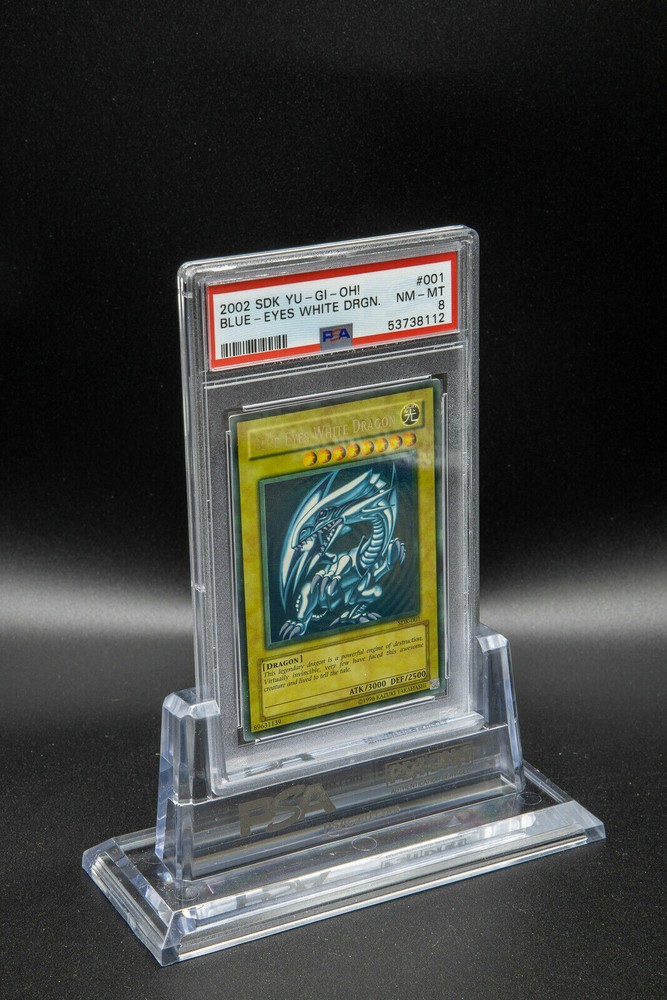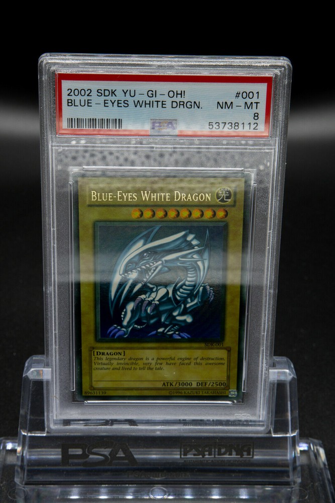 MUST BUY for Yu-Gi-Oh! fans and professional collectors. Iconic monster that is equivalent to the Black Lotus of Magic and Charizard of Pokemon. With current skyrocketing prices of 1st-edition Blue Eyes White Dragon, this card at PSA 8 is an amazing affordable investment that is a win-win for both personal collection and long-term investment purposes. EXTREMELY LOW Population Report: ONLY 126 PSA 8 Blue-Eyes White Dragon in the world.