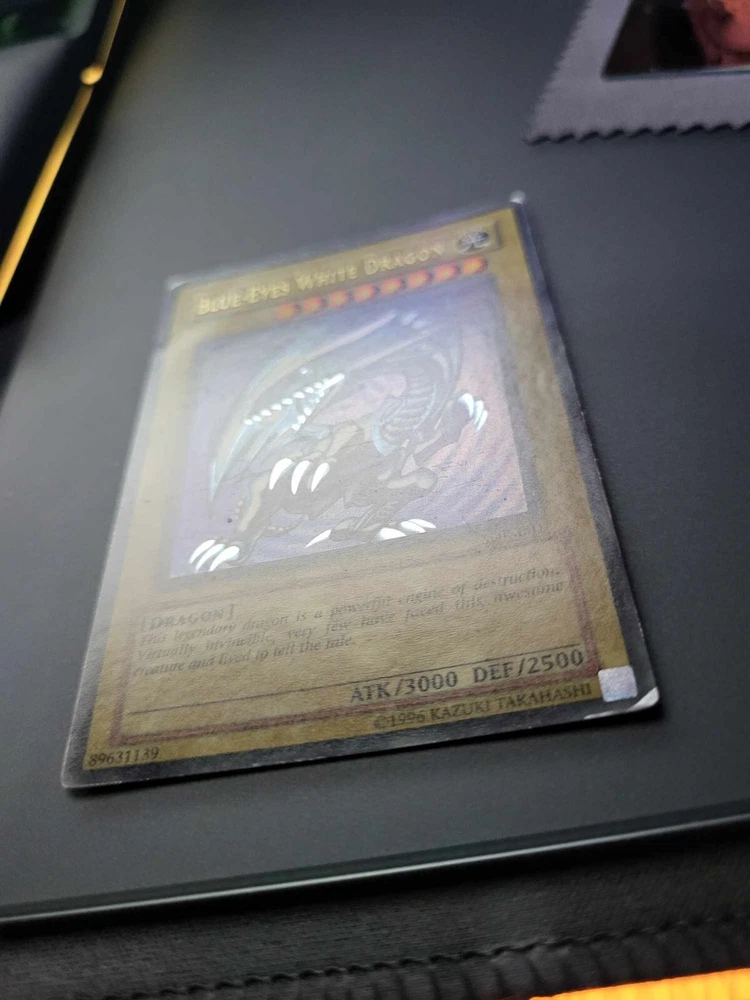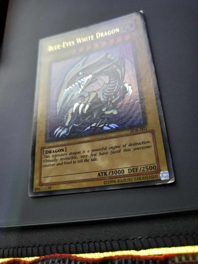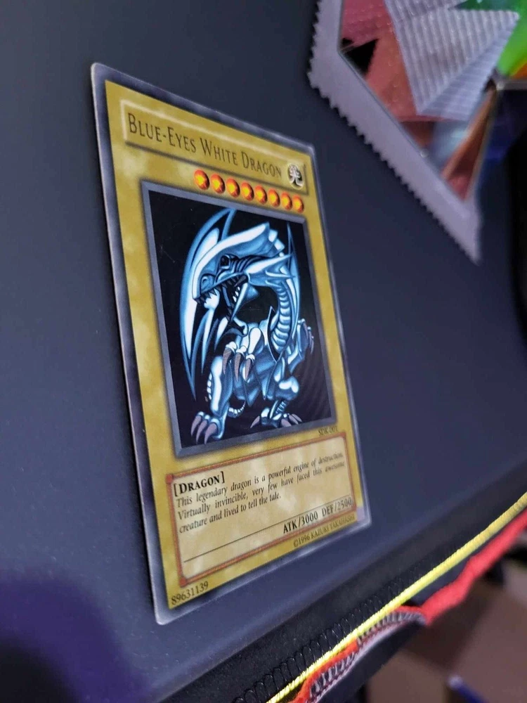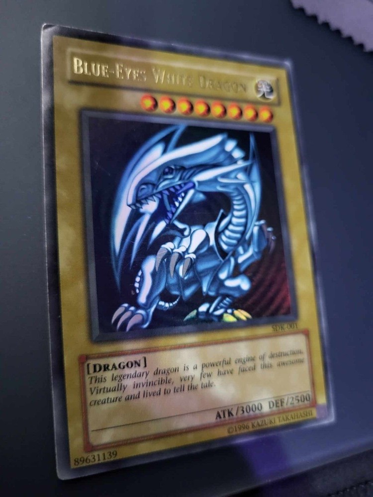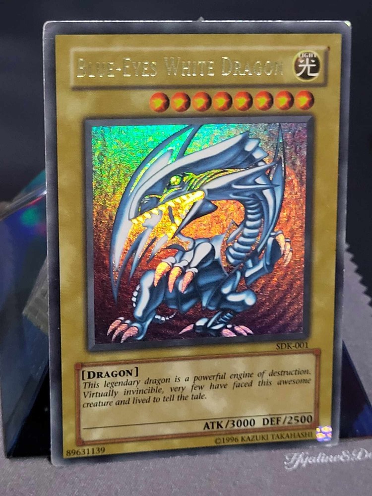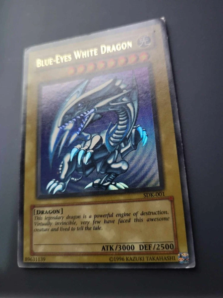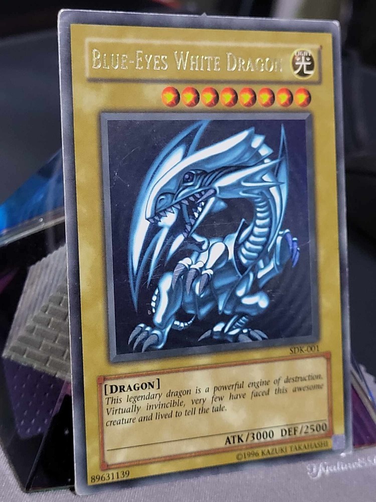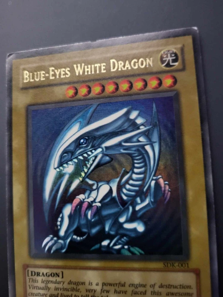 This 2002 Yugioh Blue-Eyes White Dragon card is a must-have for any serious collector or player. With its iconic design and holographic finish, it's sure to be a standout addition to any collection. This card is from the Starter Deck Kaiba set and is ultra rare with the card number SDK-001. It was released by Konami and is in English North American language. The Blue-Eyes White Dragon is a normal card and has the creature/monster type of dragon. It measures Yugioh size and is made of card stock material. This vintage card is from the year 2002 and is suitable for ages 4 and up. Its rarity and faded speciality make it a unique piece that any Yugioh fan will appreciate. See pictures for condition.