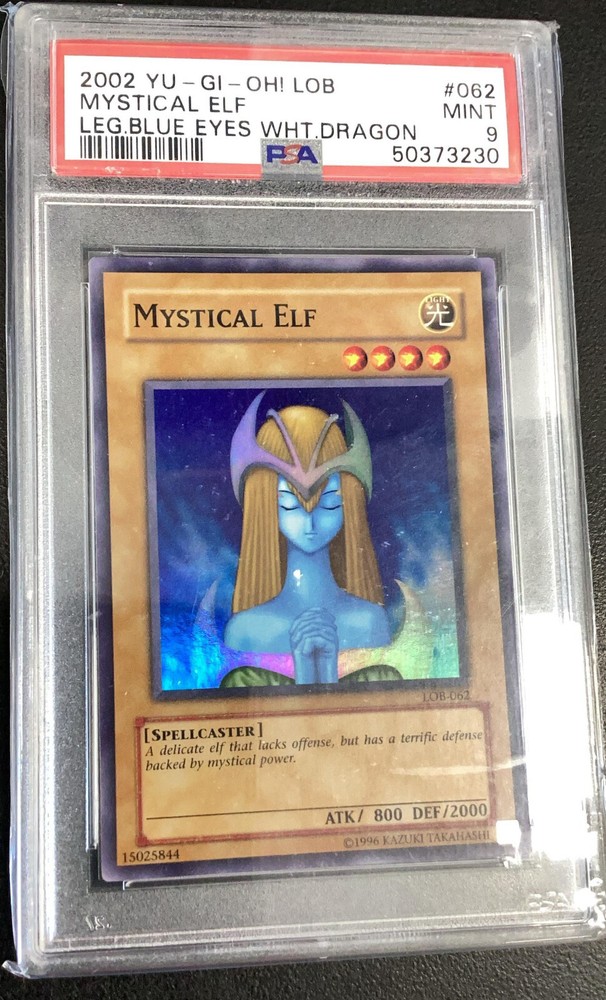 2002 Yu-gi-oh! Lob-legend Of Blue Eyes White Dragon 062 Mystical Elf PSA 9 This item has been professionally graded by the Professional Sports Authenticator (PSA) and has received a Mint 9 grade for its condition. Ideal for collectors looking to complete their collection or add a new piece to their lineup.