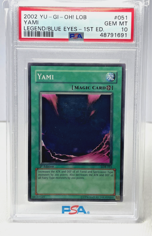 2002 Yugioh PSA 10 Yami LOB-051 1st Edition GEM MT Legend Blue Eyes White Dragon (48791691)